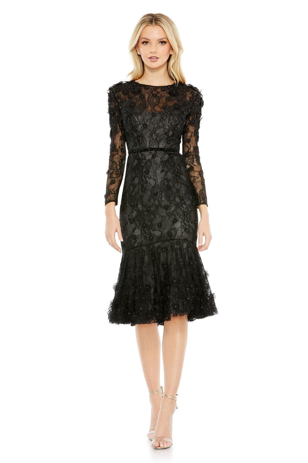 67703-Floral Appliqué Long Sleeve Cocktail Dress
