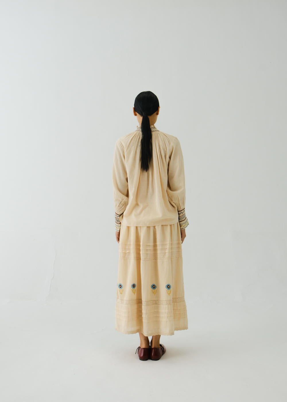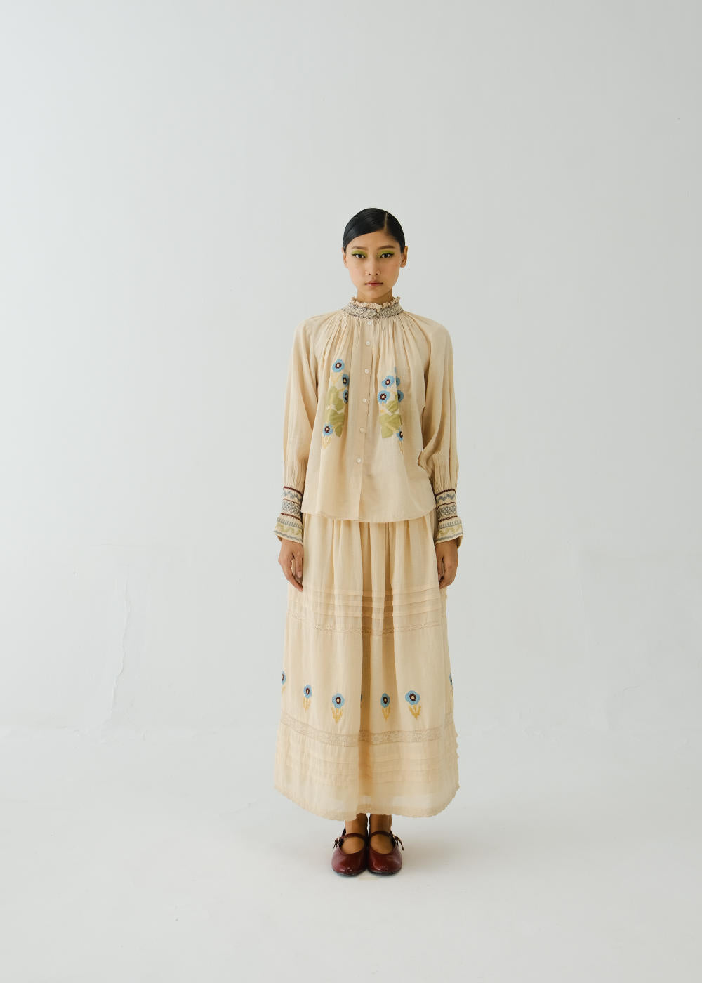 What anchors the brand is its reverence for technique. Smocking, lacework, appliqué—the kind of hand-labour that belongs to heirloom trunks and craft histories—reappear with a fresh, expressive clarity. The garments feel almost cinematic: nostalgic without being dated, whimsical without being naive, artistic without ever losing function. It’s the rare kind of design that feels both intimate and extraordinary.