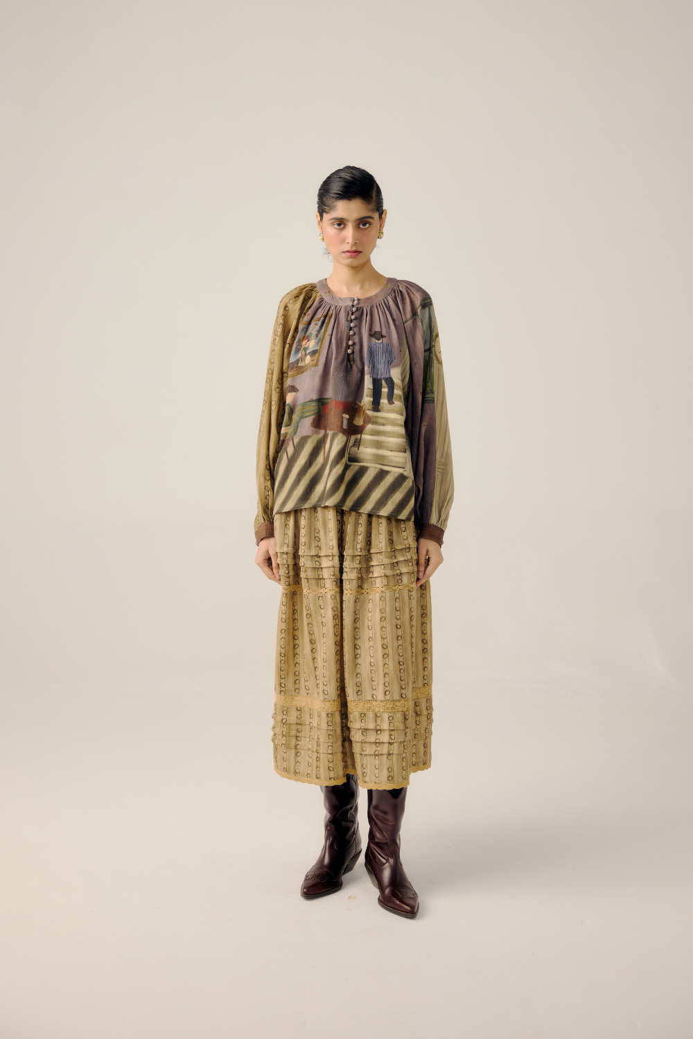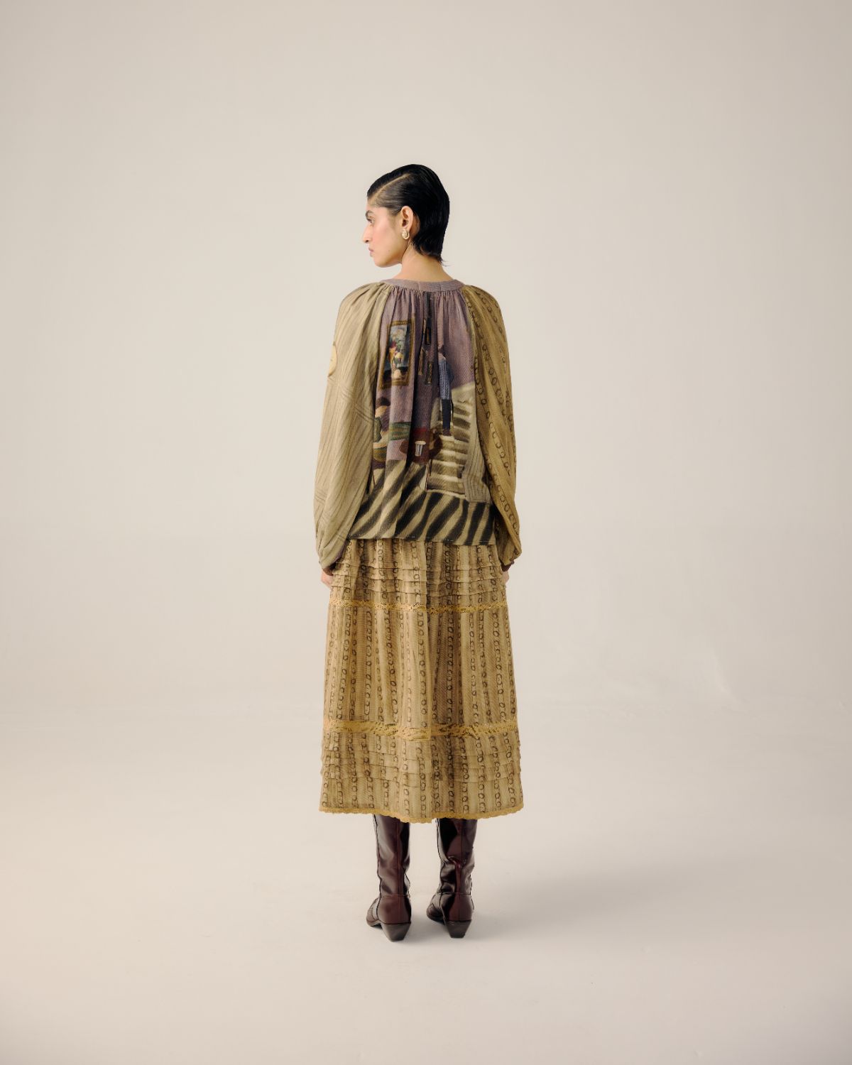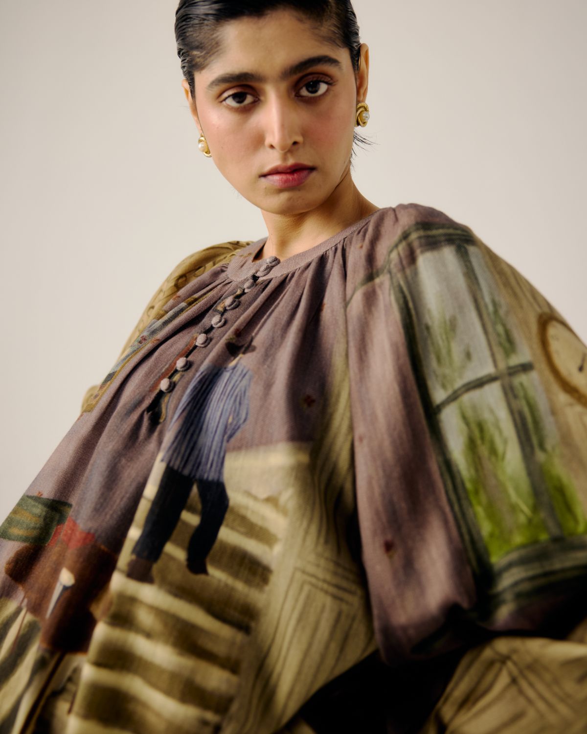 CORD blurs the line between art and attire in a way few labels dare to. Here, fabrics become canvases; illustrations—drawn by hand, steeped in imagination—flow across silhouettes that feel sculptural yet deeply wearable. Each piece has a texture of memory to it, as if it carries echoes of a past life, now reframed for a contemporary world.