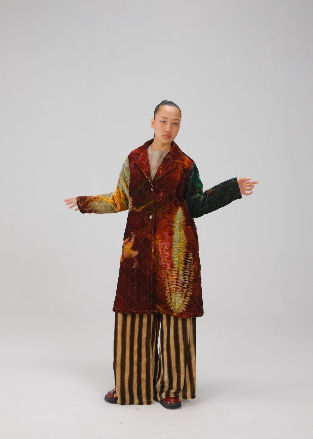 CORD blurs the line between art and attire in a way few labels dare to. Here, fabrics become canvases; illustrations—drawn by hand, steeped in imagination—flow across silhouettes that feel sculptural yet deeply wearable. Each piece has a texture of memory to it, as if it carries echoes of a past life, now reframed for a contemporary world.