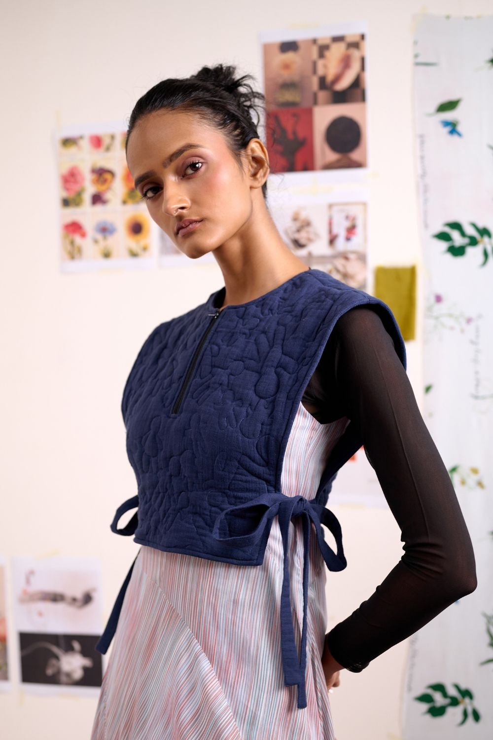 Product Details: A playful yet elegant bib top featuring intricate patchwork and embroidery, with adjustable side ties for a customizable fit. Lightweight and effortlessly stylish, this top adds texture and character to any festive or casual ensemble.