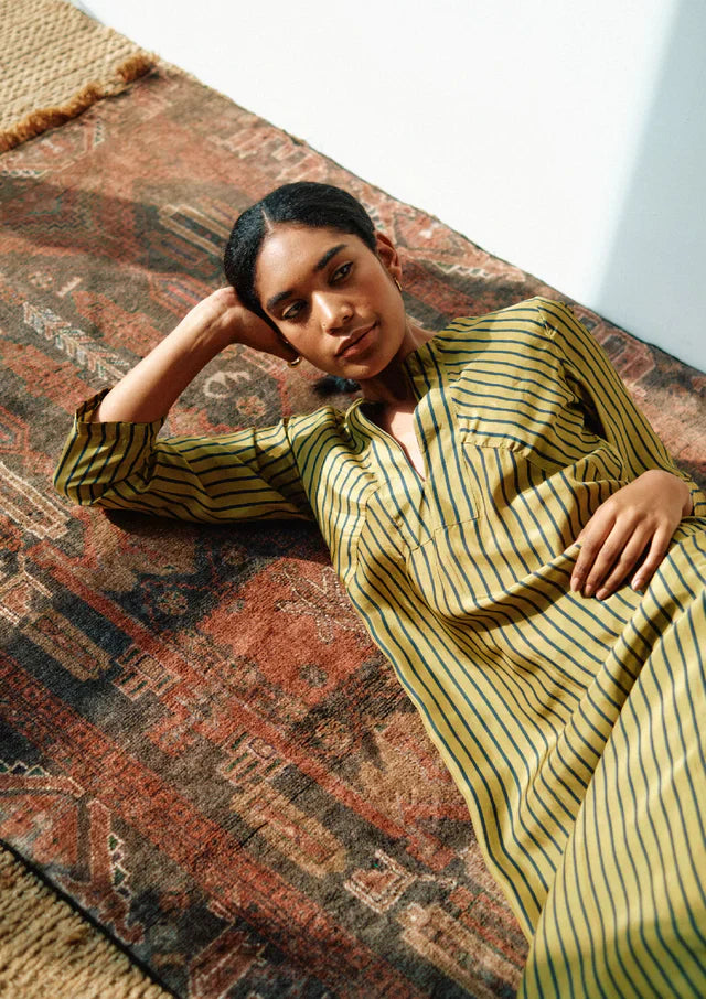 DOT is built on the philosophy of simple living: colours borrowed from nature, silhouettes that float rather than cling, and craftsmanship that honours tradition without performing it. There is a serenity to their pieces — soft pastels, fluid drapes, minimal embroidery, and a lingering hint of the vintage. Everything feels poetic, but never precious; modern, but never loud. Their garments live in that delicate balance where texture, alignment, and movement tell the story.