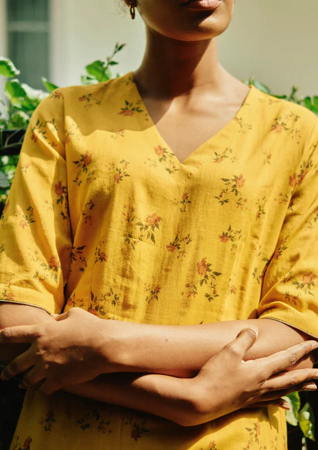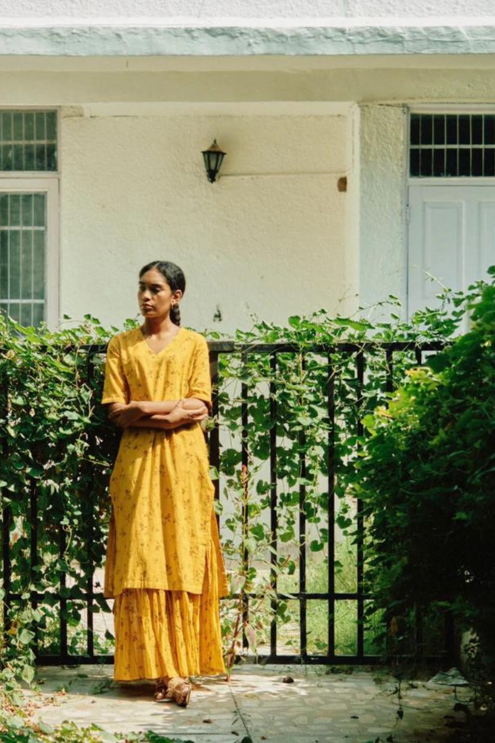 This Yellow Kurta- Sharara set features Chintz printed kurta with paired sharara, crafted from high-quality Cotton fabric. The Kurta Set has a very easy breezy and flowy silhouette, ensuring maximum comfort and style.