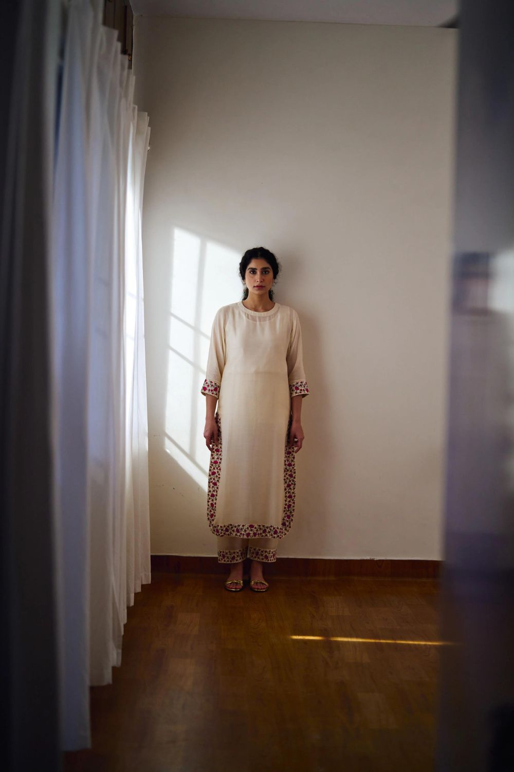 DOT is built on the philosophy of simple living: colours borrowed from nature, silhouettes that float rather than cling, and craftsmanship that honours tradition without performing it. There is a serenity to their pieces — soft pastels, fluid drapes, minimal embroidery, and a lingering hint of the vintage. Everything feels poetic, but never precious; modern, but never loud. Their garments live in that delicate balance where texture, alignment, and movement tell the story.