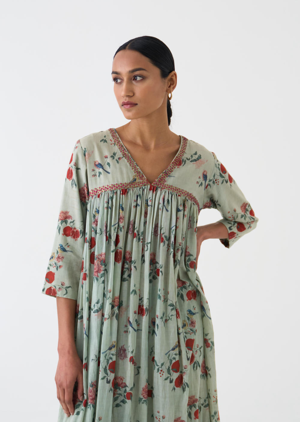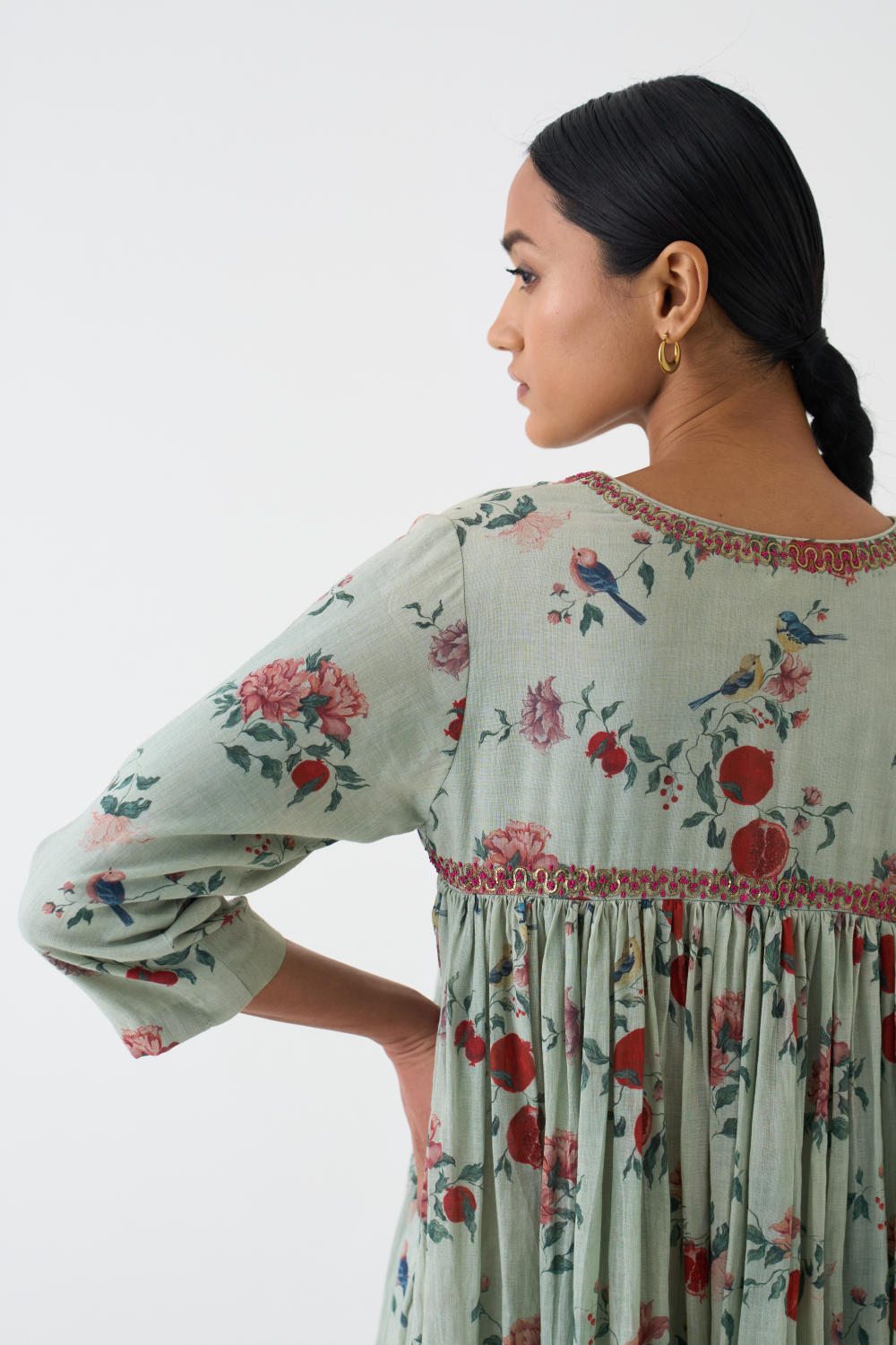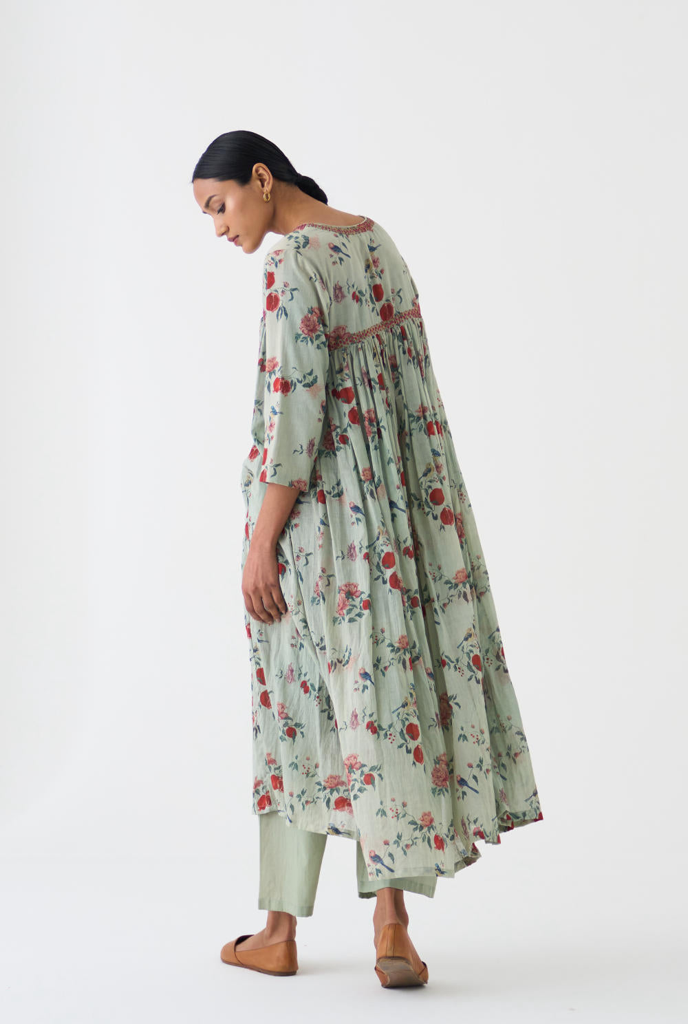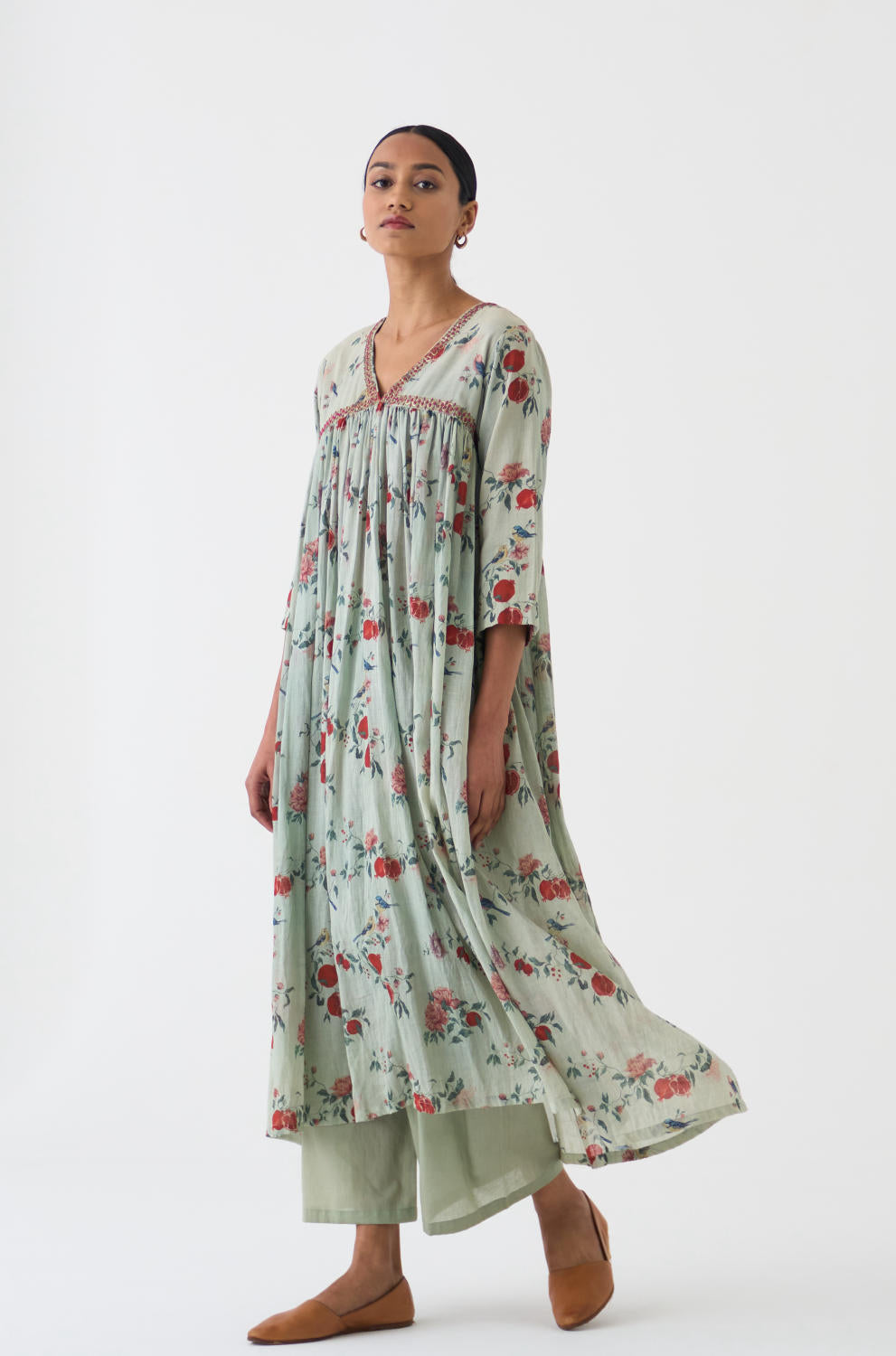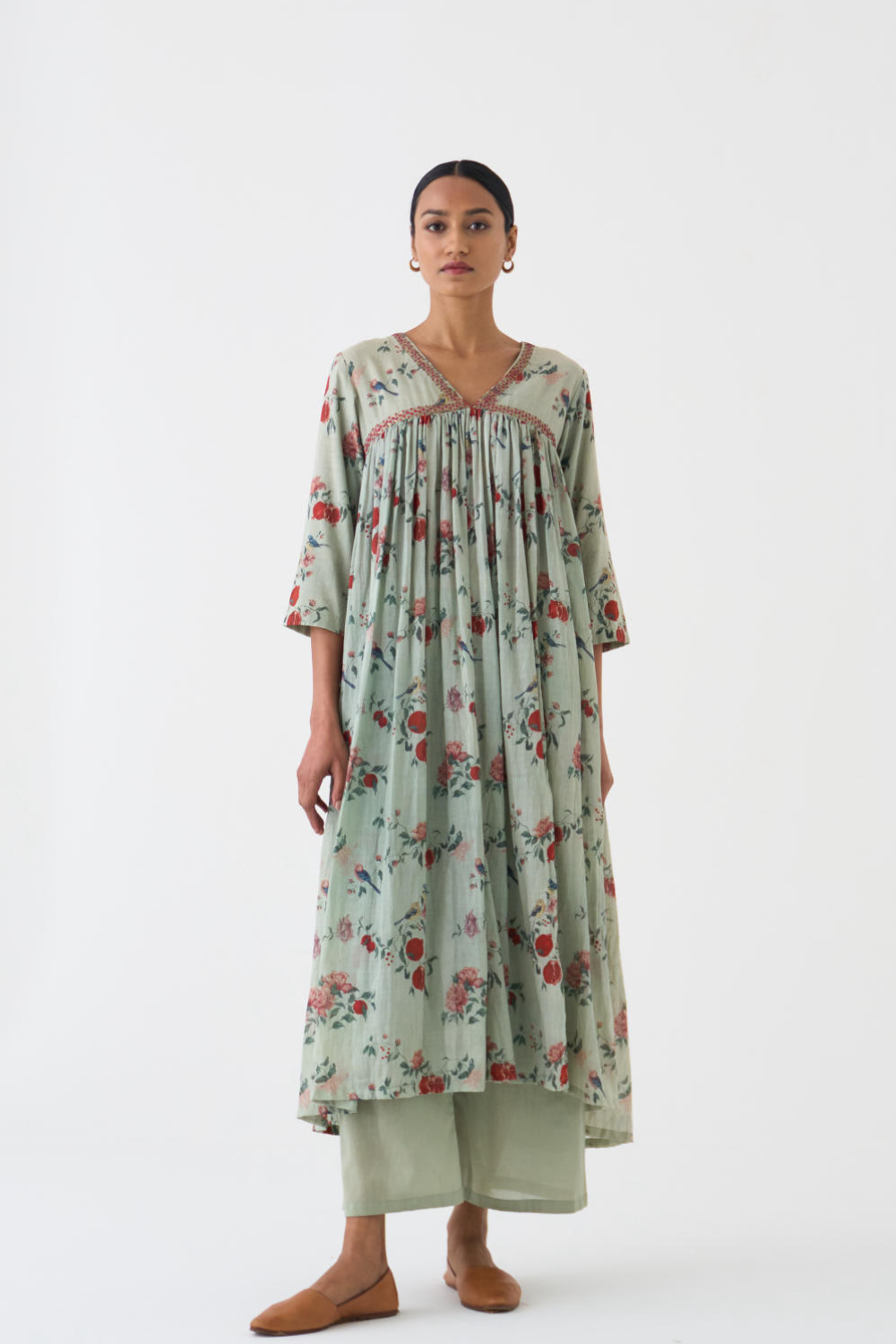 Featuring a Mint Kurta Set in cotton base with resham and Pitta work on yoke.
