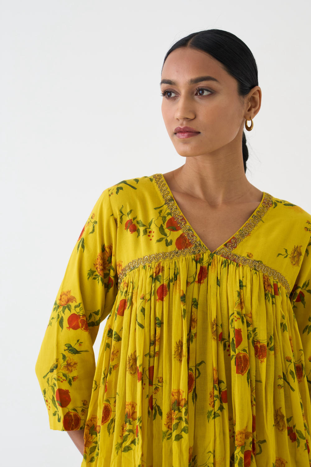 Featuring a Yellow Kurta Set in cotton base with resham and Pitta work on yoke.