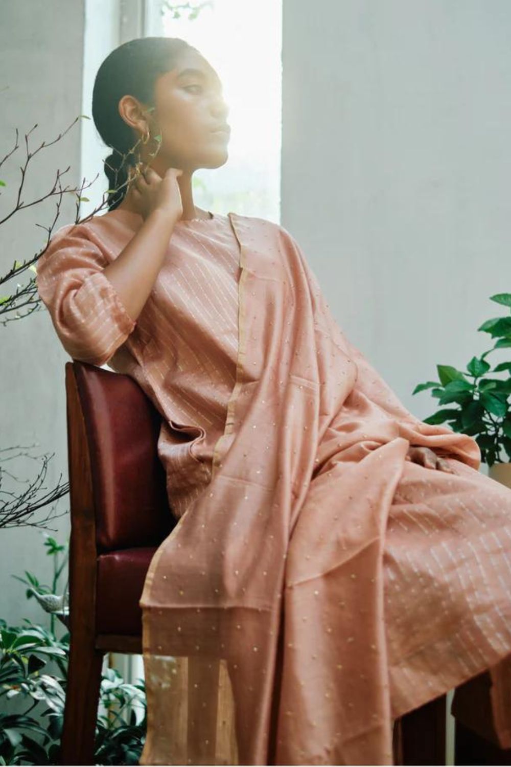 DOT is built on the philosophy of simple living: colours borrowed from nature, silhouettes that float rather than cling, and craftsmanship that honours tradition without performing it. There is a serenity to their pieces — soft pastels, fluid drapes, minimal embroidery, and a lingering hint of the vintage. Everything feels poetic, but never precious; modern, but never loud. Their garments live in that delicate balance where texture, alignment, and movement tell the story.