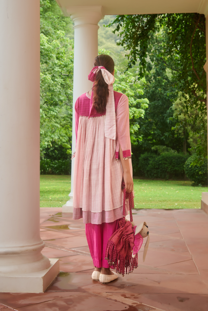 Fabric: Handwoven Yarn Dyed Silk/Cotton Stripe & 100% Cotton fabric