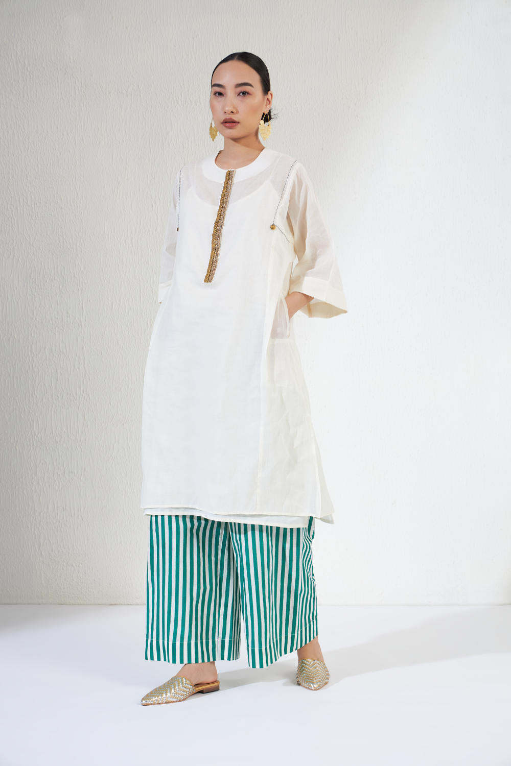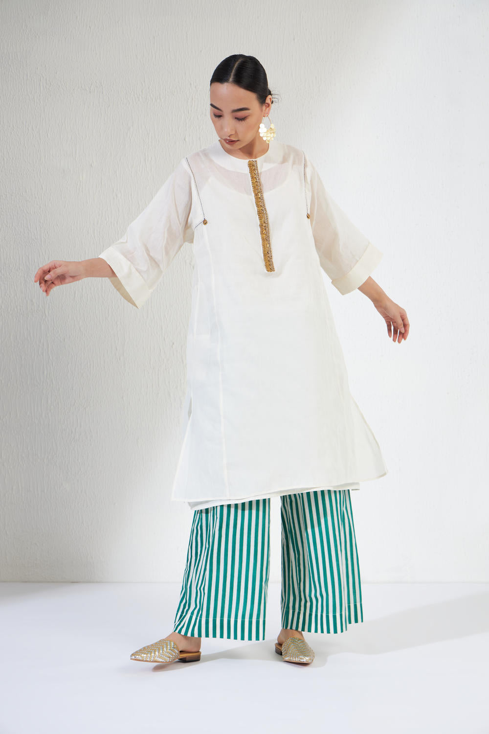 Kalidaar kurta with loose fit with wide pants, Metal Coin , Hand Work Embroidred