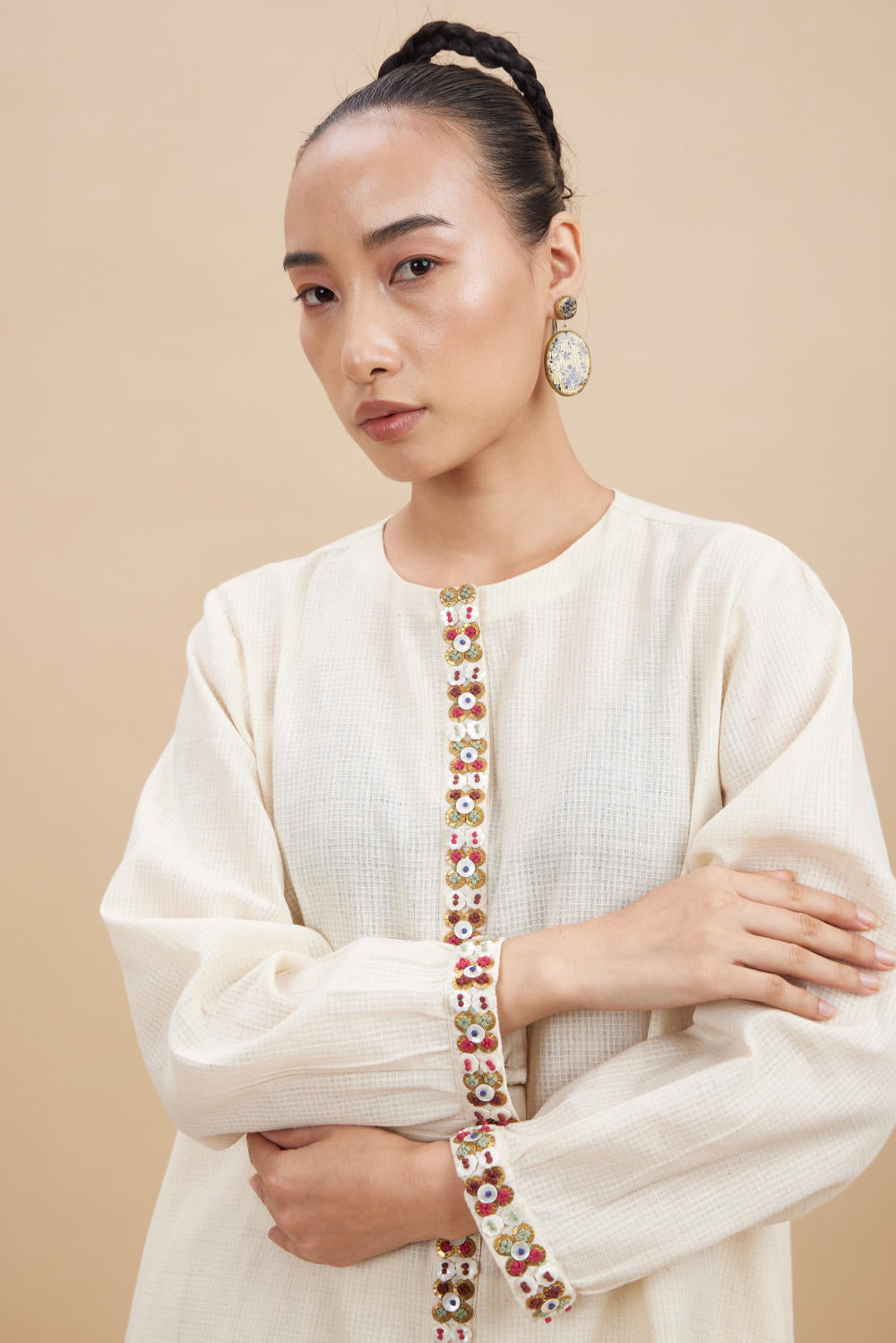 Hand loom Cotton, Metal Coin, Shell Button
