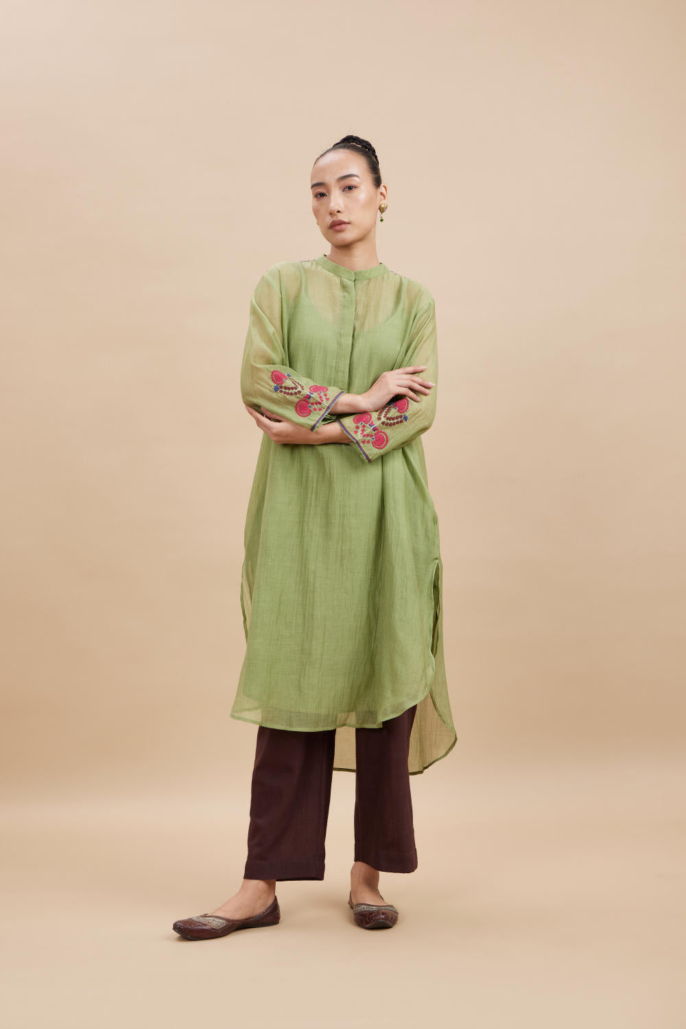 At Canvas & Weaves, we see Aavidi as part of a larger conversation about what it means to dress with intention. These are pieces for women who desire ease without erasing elegance — garments that serve, move, and accompany rather than dictate. Aavidi’s kalidaar kurtas, finished with delicate sacha gota work, exemplify this balance. Classic lines meet modern restraint, pairing effortlessly with salwars adorned in thoughtful gota motifs.