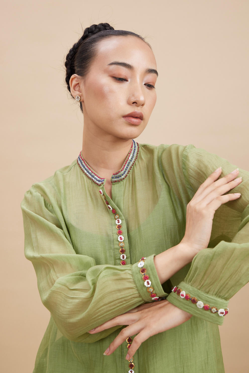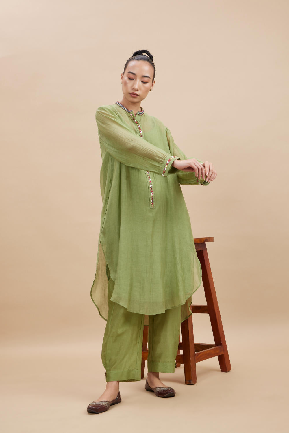 Fabric: Cotton Milk Chanderi, Hand loom Cotton, Metal Coin, Shell Button