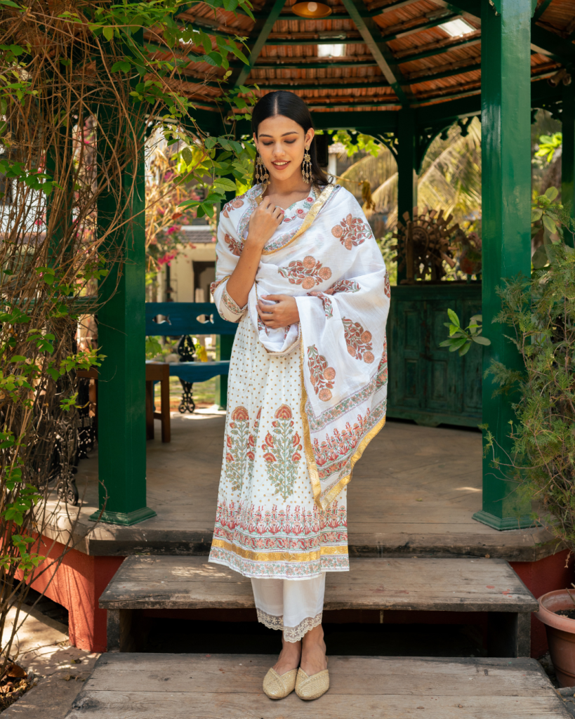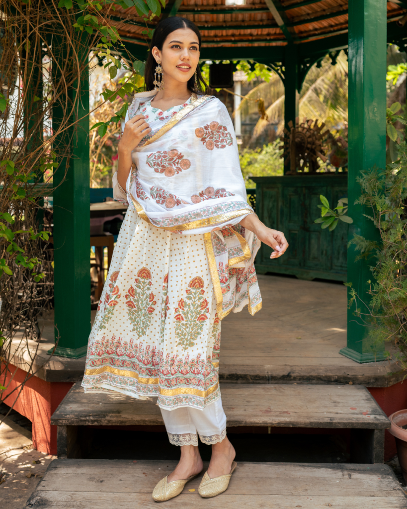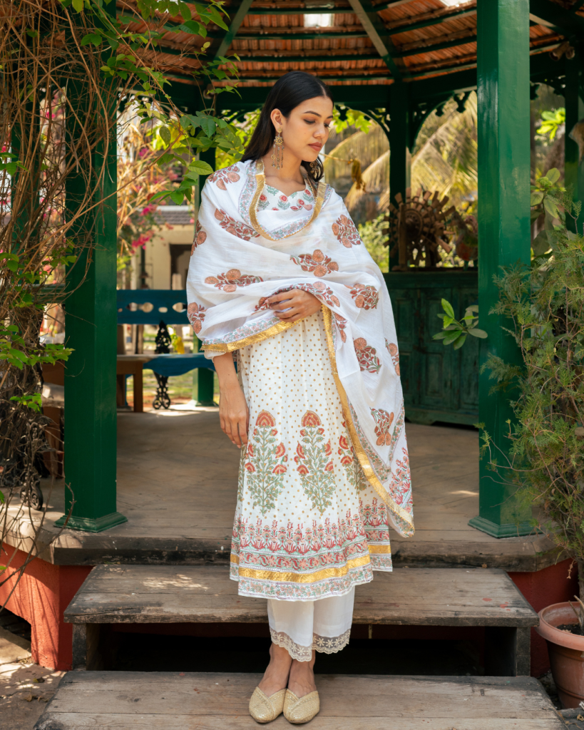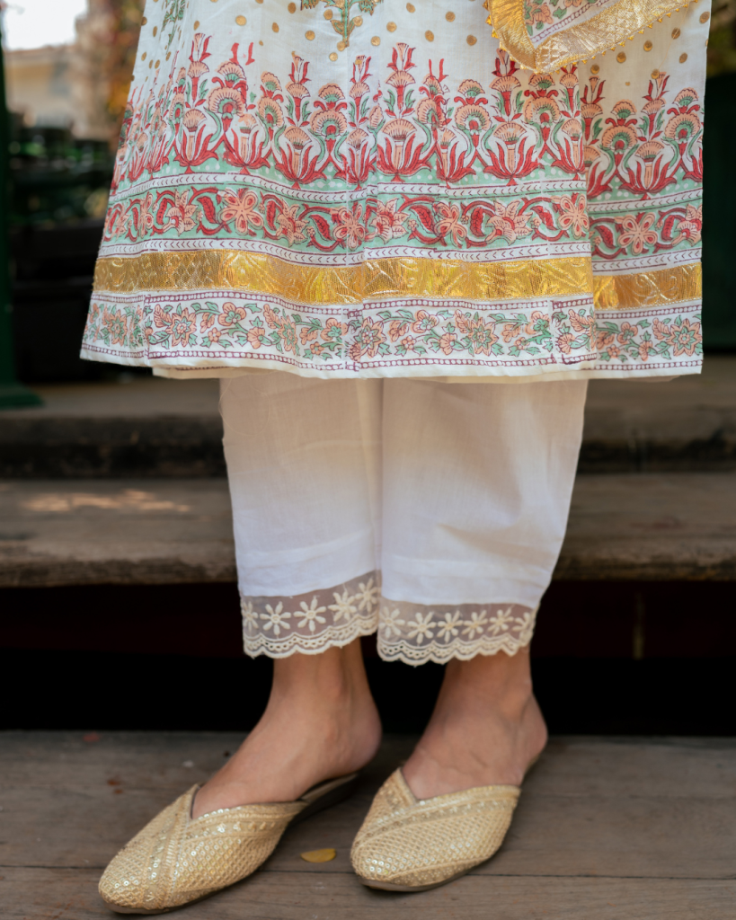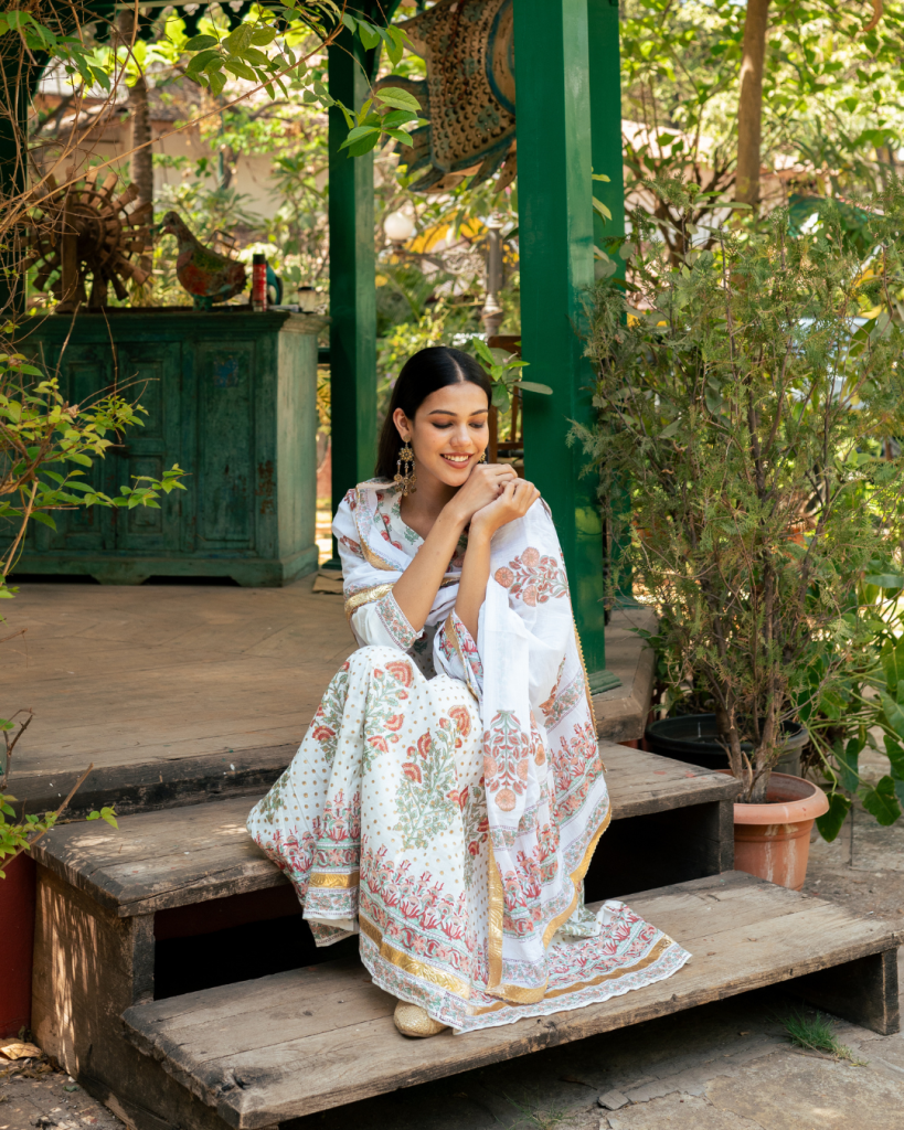 Translating prayer in Persian "Dua" is an amalgamation of our signature block prints, gota patti and classic silhouettes handcrafted on the most delectable base of cotton and Mul Mul.