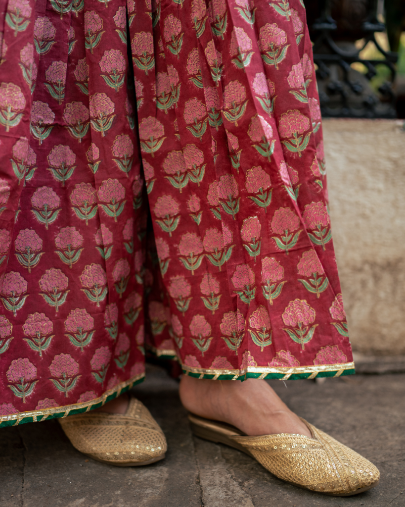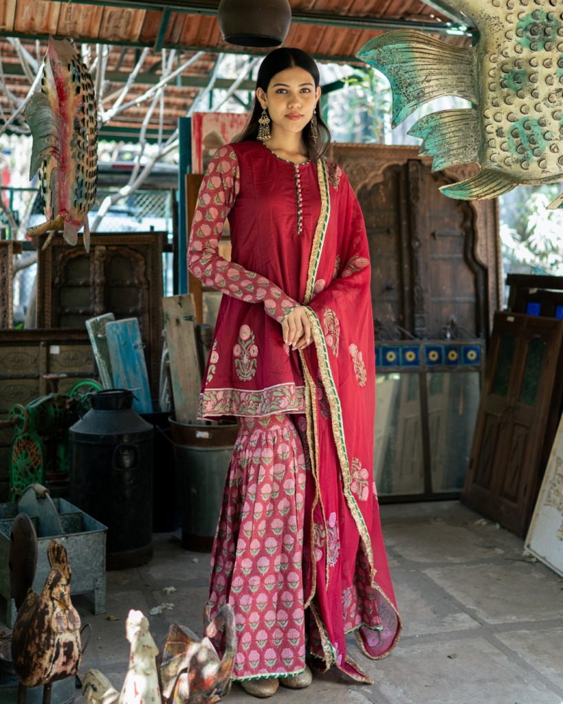Translating prayer in Persian "Dua" is an amalgamation of our signature block prints, gota patti and classic silhouettes handcrafted on the most delectable base of cotton and Mul Mul.