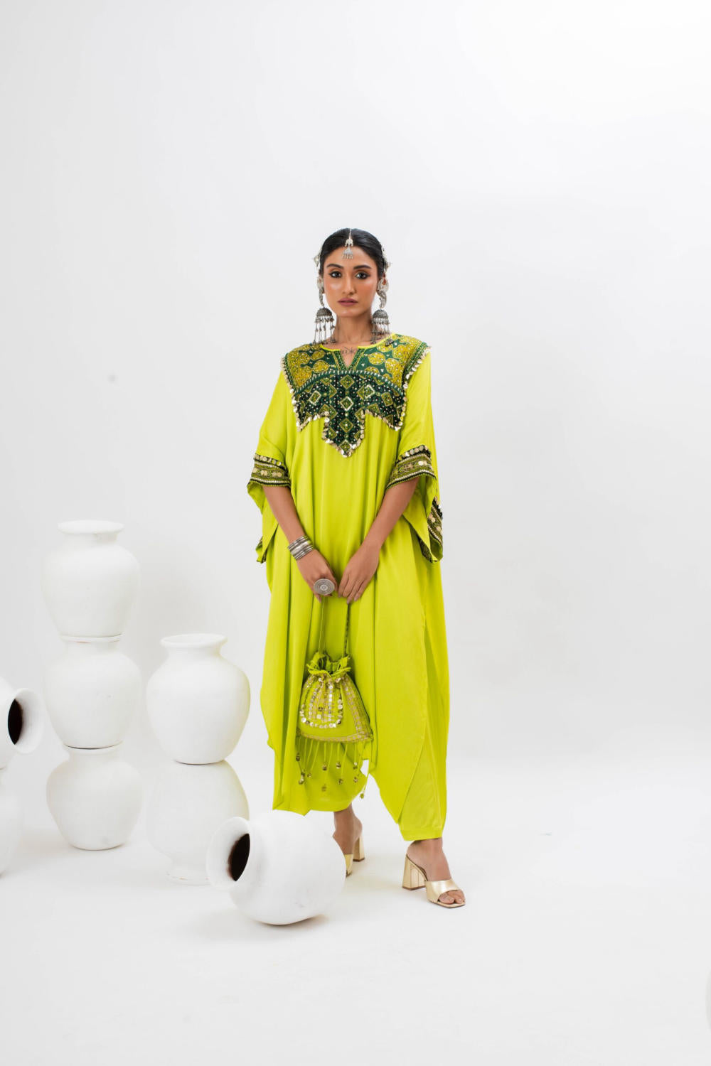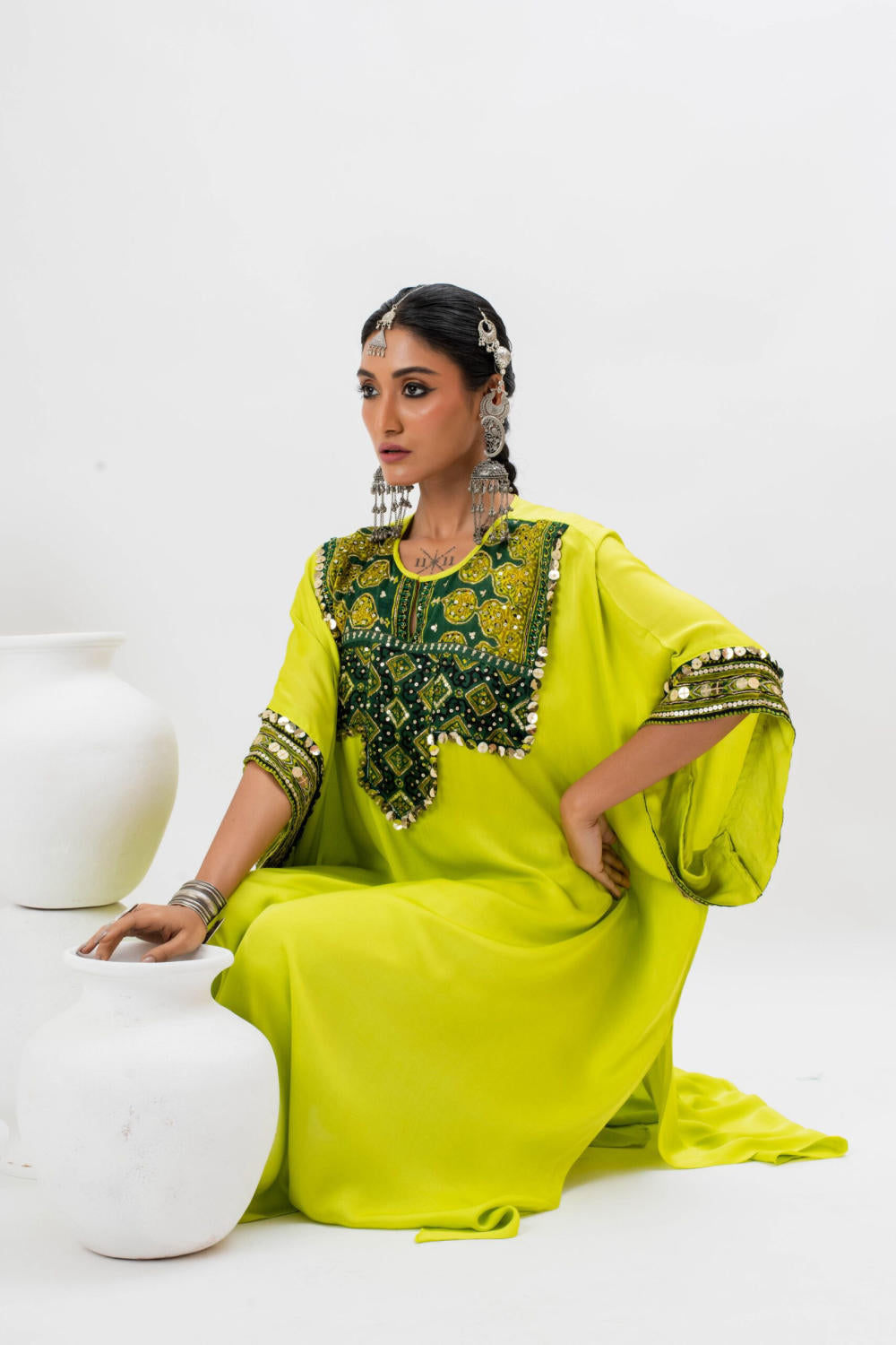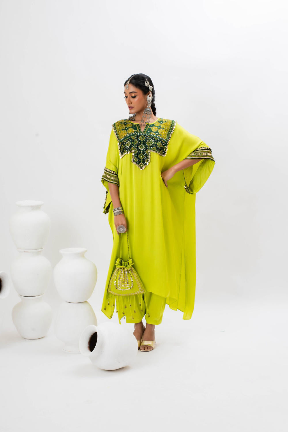 Preeti’s design philosophy is refreshingly modern: she takes silhouettes we know — the salwar set, the kurta, the lehenga-inspired skirt — and strips away the weight, quite literally. Fabrics rooted in heritage such as ajrakh and handwoven textiles become unexpectedly playful under her lens. A burst of neon here, a reworked motif there, a dash of embroidery that feels artisanal but never ornate.