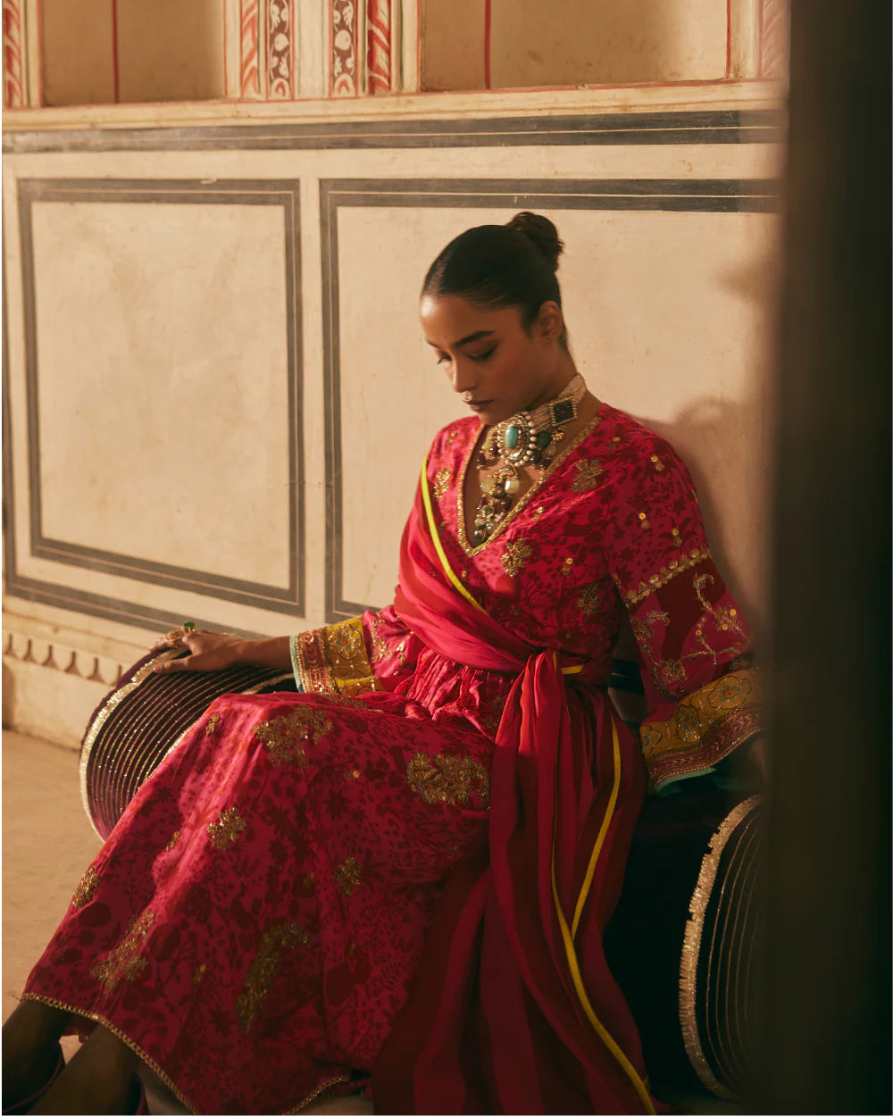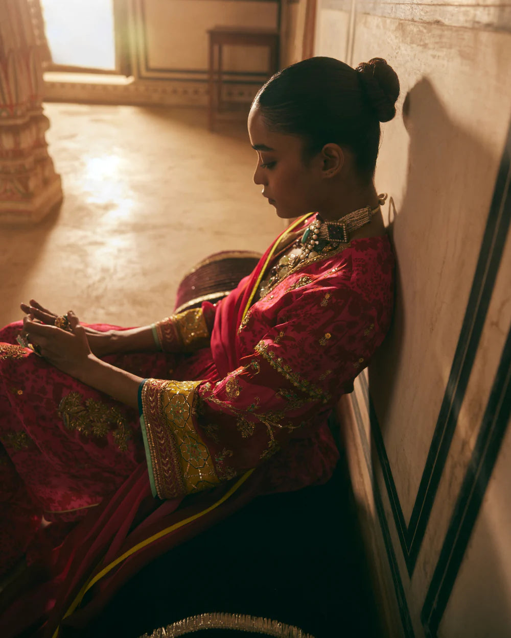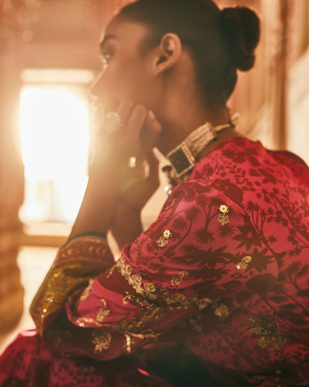 Trained at NIFT and NIFD, the sisters bring technical rigour to their craft: every garment is shaped with intention, from the drape of the fabric to the finesse of the motif. What defines RajiRamniq is this balance — expressive without excess, deeply Indian yet cosmopolitan in its sensibility.