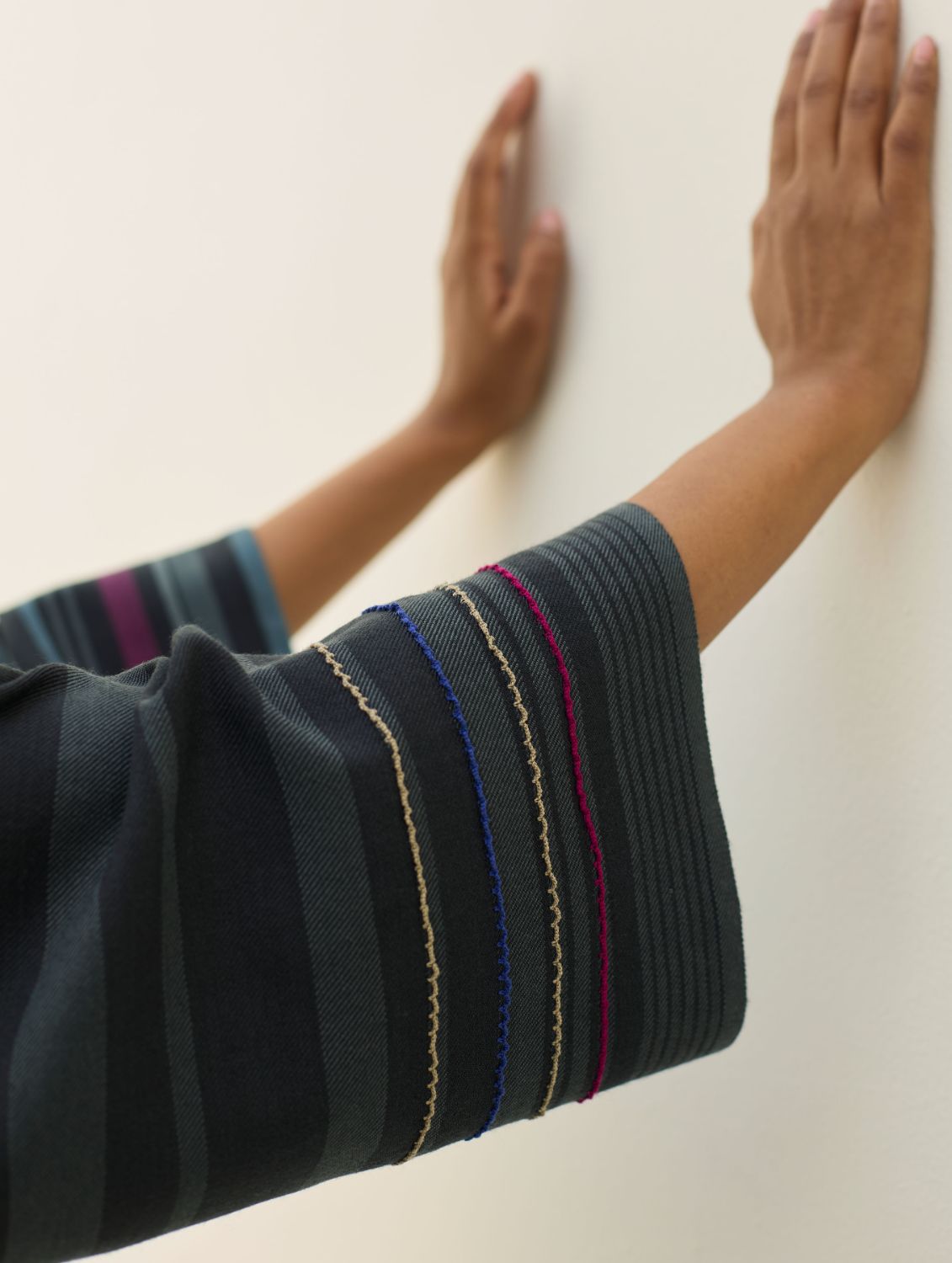 Their signature linens soften beautifully with time, eventually returning to the earth. They work with eri (ahimsa) silk, celebrated for its strength and gentle texture, and craft thoughtful blends of viscose, cotton, silk, and linen for pieces designed to last. Yarn-dyed techniques minimise chemical use and create the subtle, heathered tones that have become a quiet Manan signature.