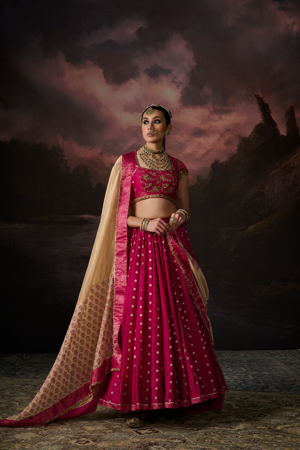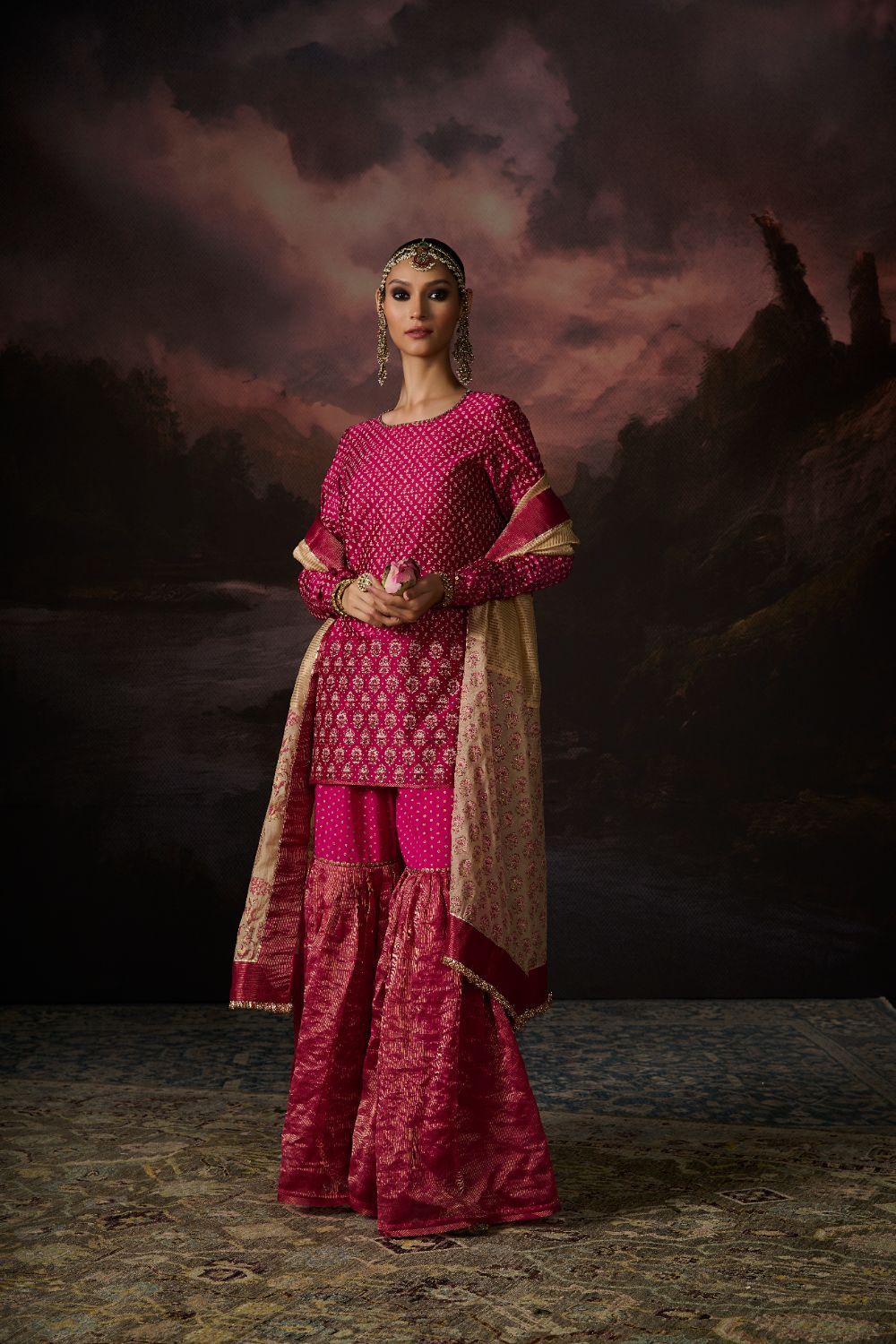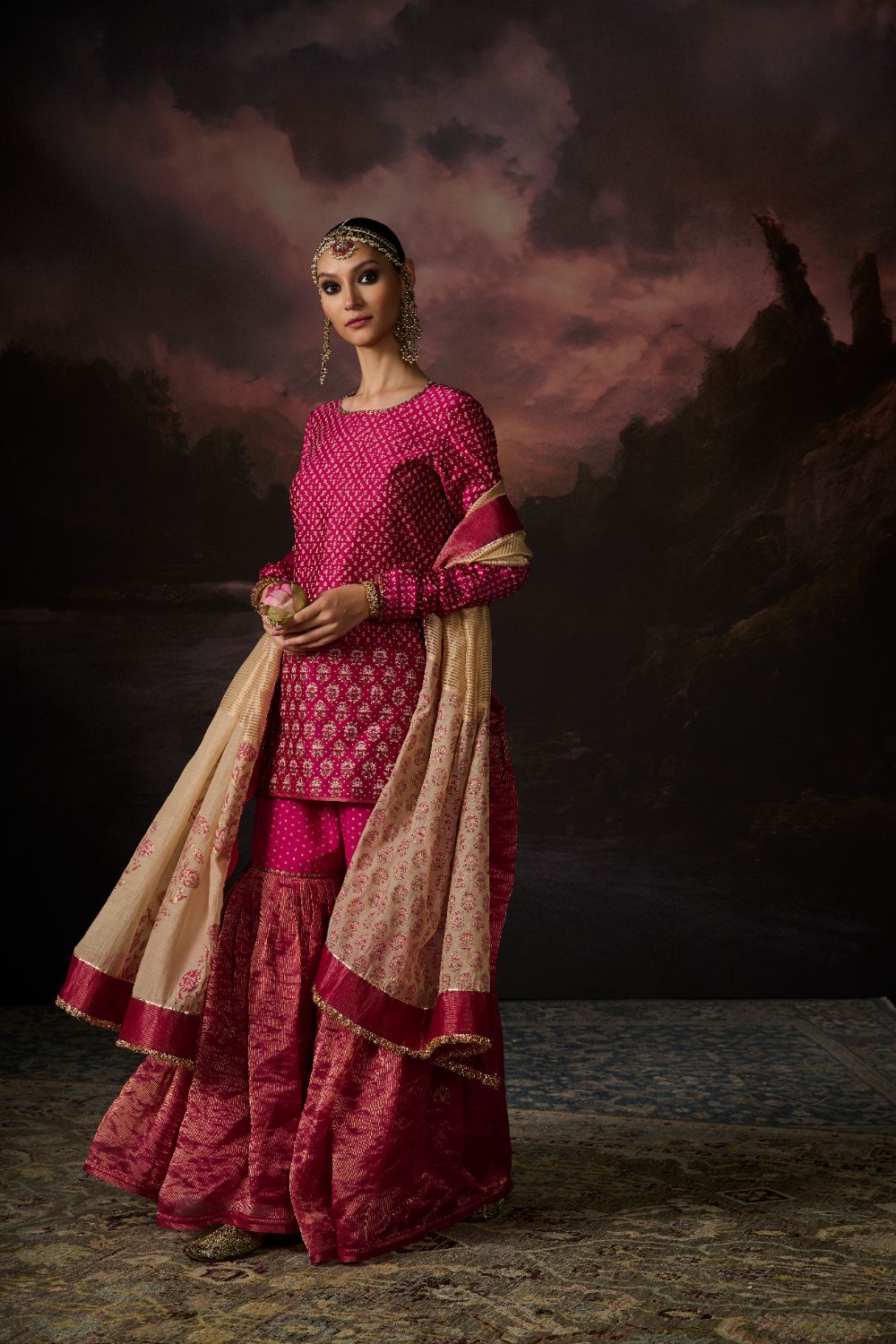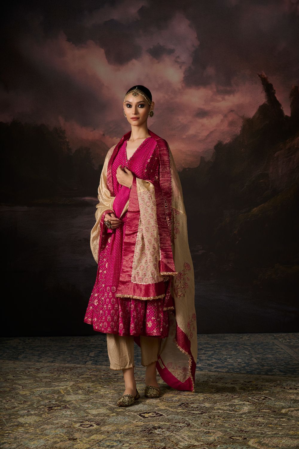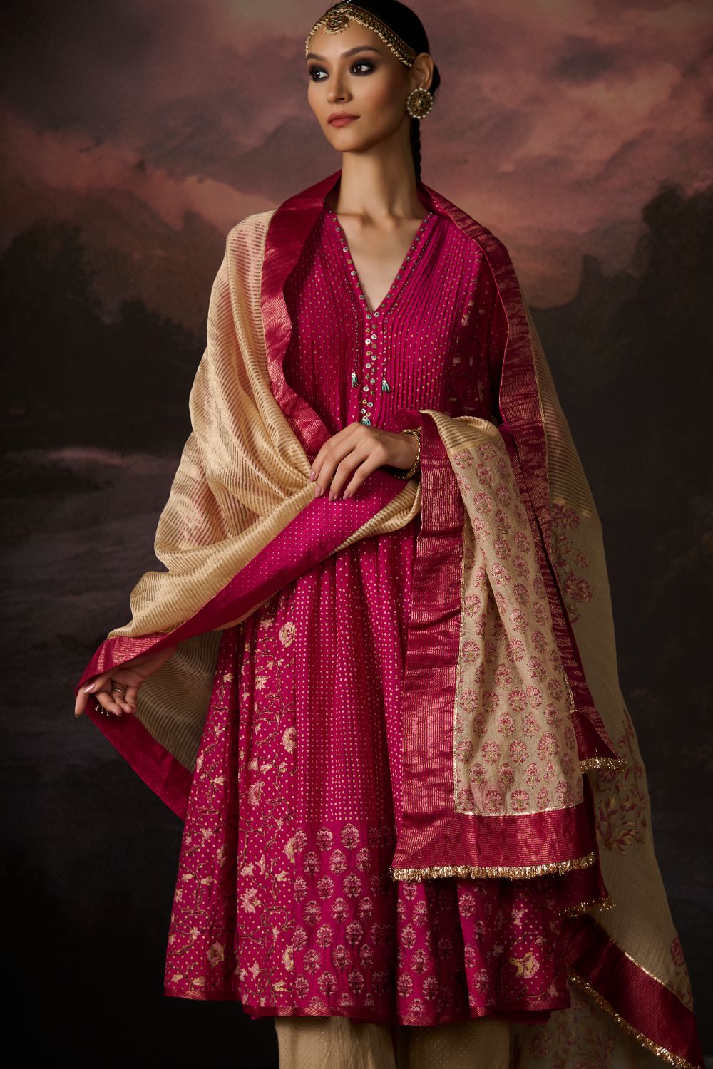 Her Chanderi carries its signature translucence and soft sheen, but with a subtlety that feels almost ethereal — printed slowly, consciously, through hand block printing that heightens the fabric's inherent delicacy.