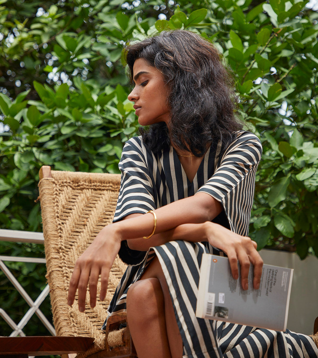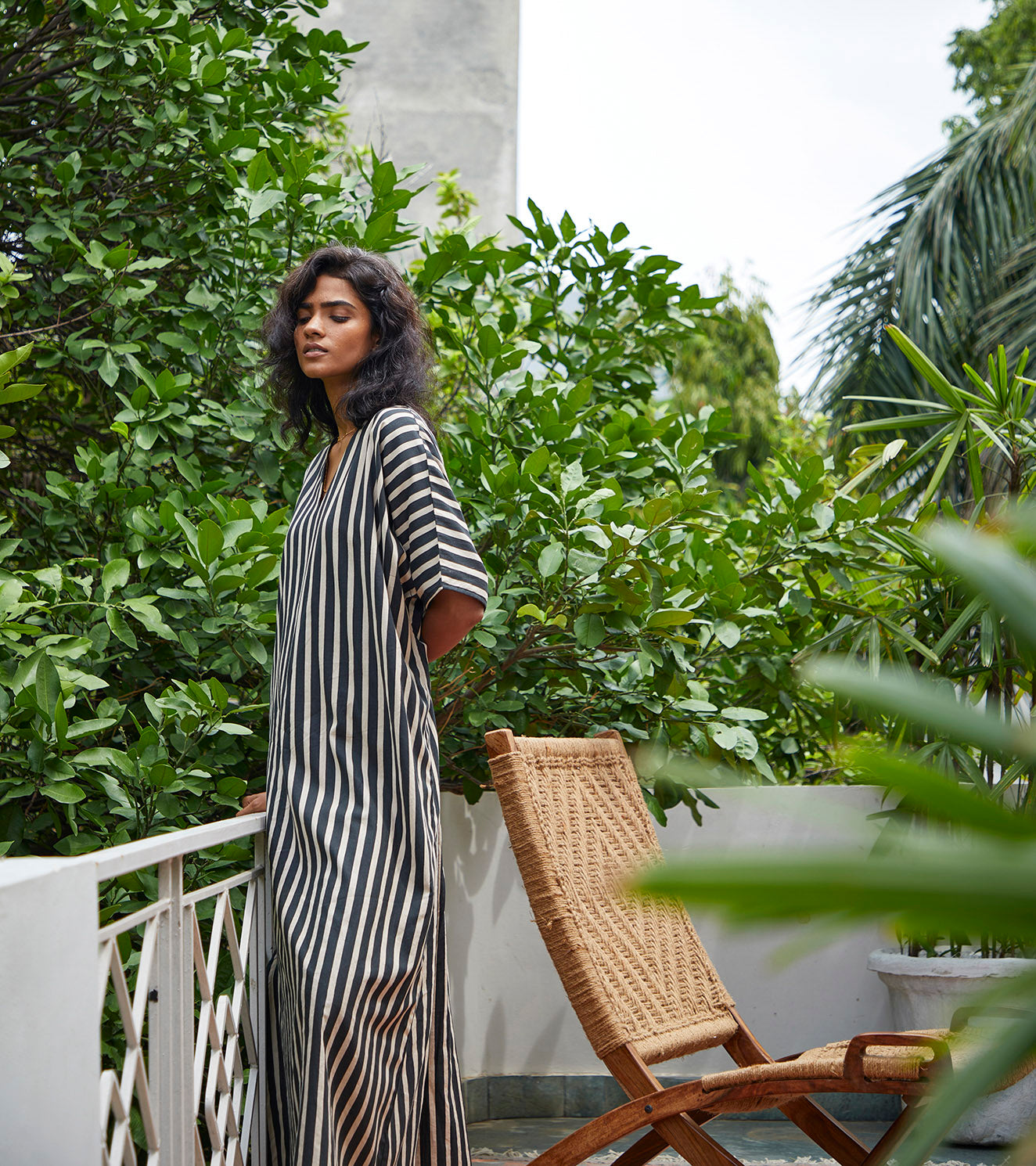 Each piece is grounded in India’s textile heritage yet designed for a woman who moves easily between cultures and climates. The brand’s commitment to homegrown cotton, artisanal processes, and clean, breathable shapes has made these garments not just beautiful, but deeply wearable.