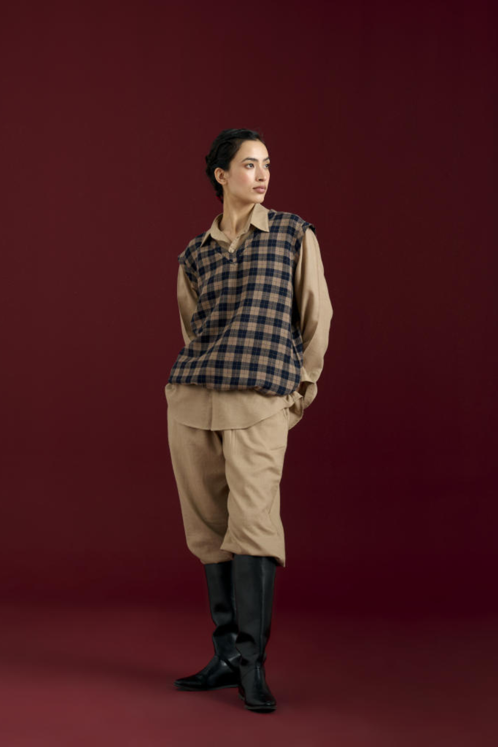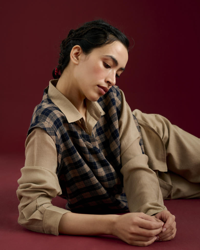V-neck vest crafted from luxurious cashmere in a chequered pattern