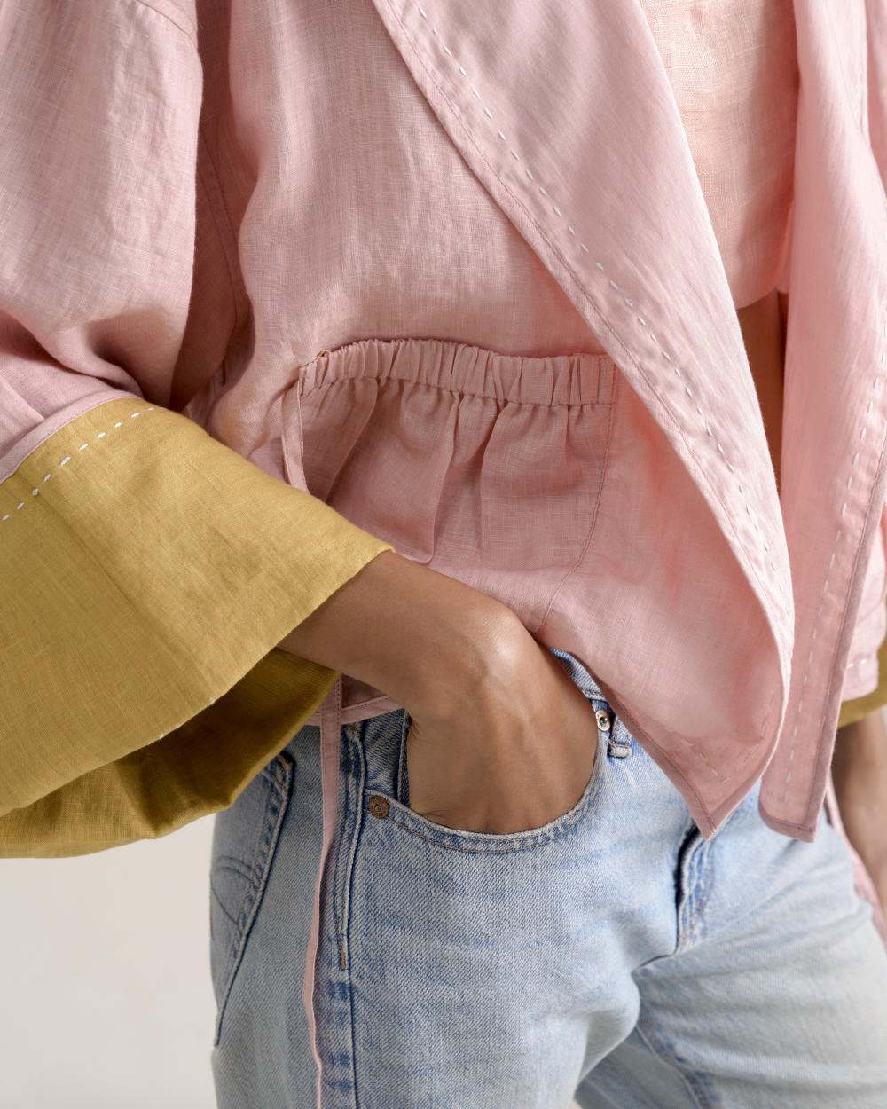 Reversible design with linen on one side and cotton on the other