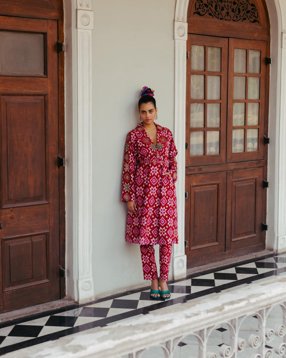 Ahilya Ikat Trench Kurta Set Fashion JodiLife