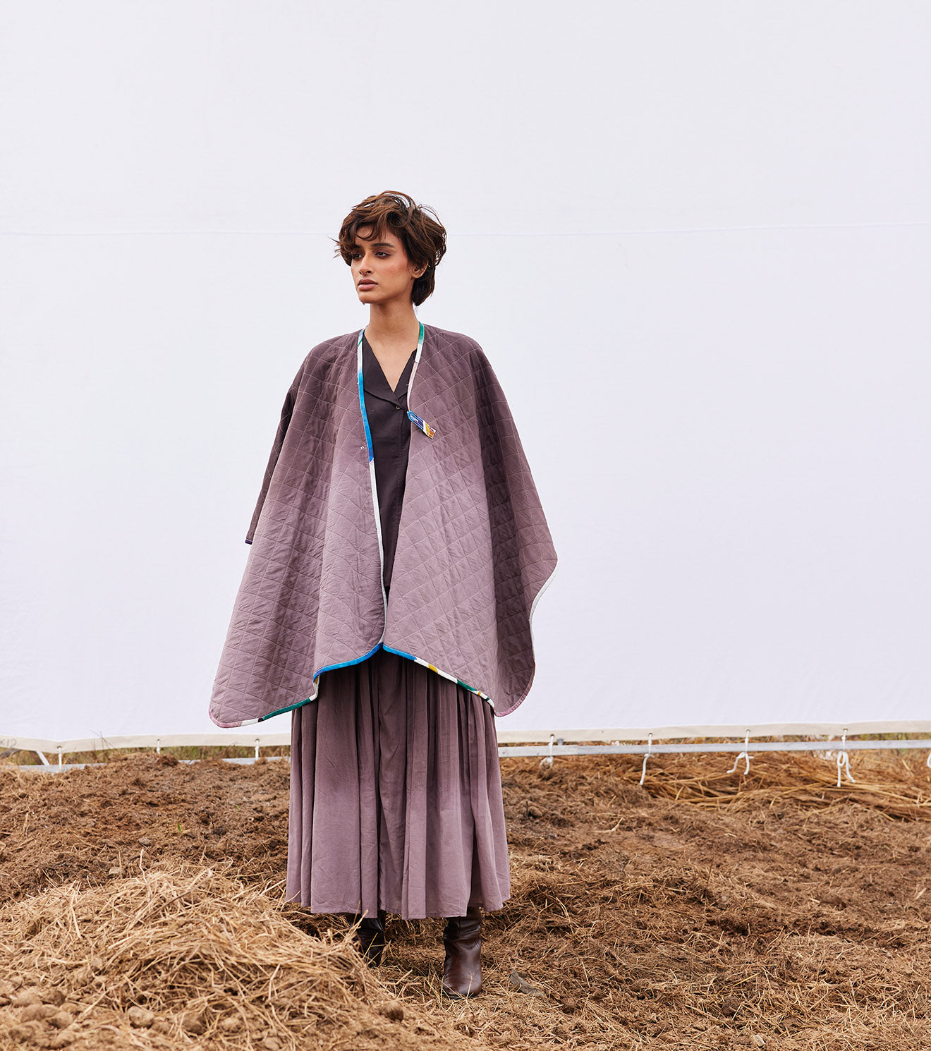 Rooted in handloom cotton and natural dyes, Khara Kapas works with the simplest geometry — circles, squares, triangles — and turns them into silhouettes that feel effortless, global, and emotionally familiar. There is a stillness to their clothes, a sense of returning to slower rhythms and honest materials, without ever losing relevance.