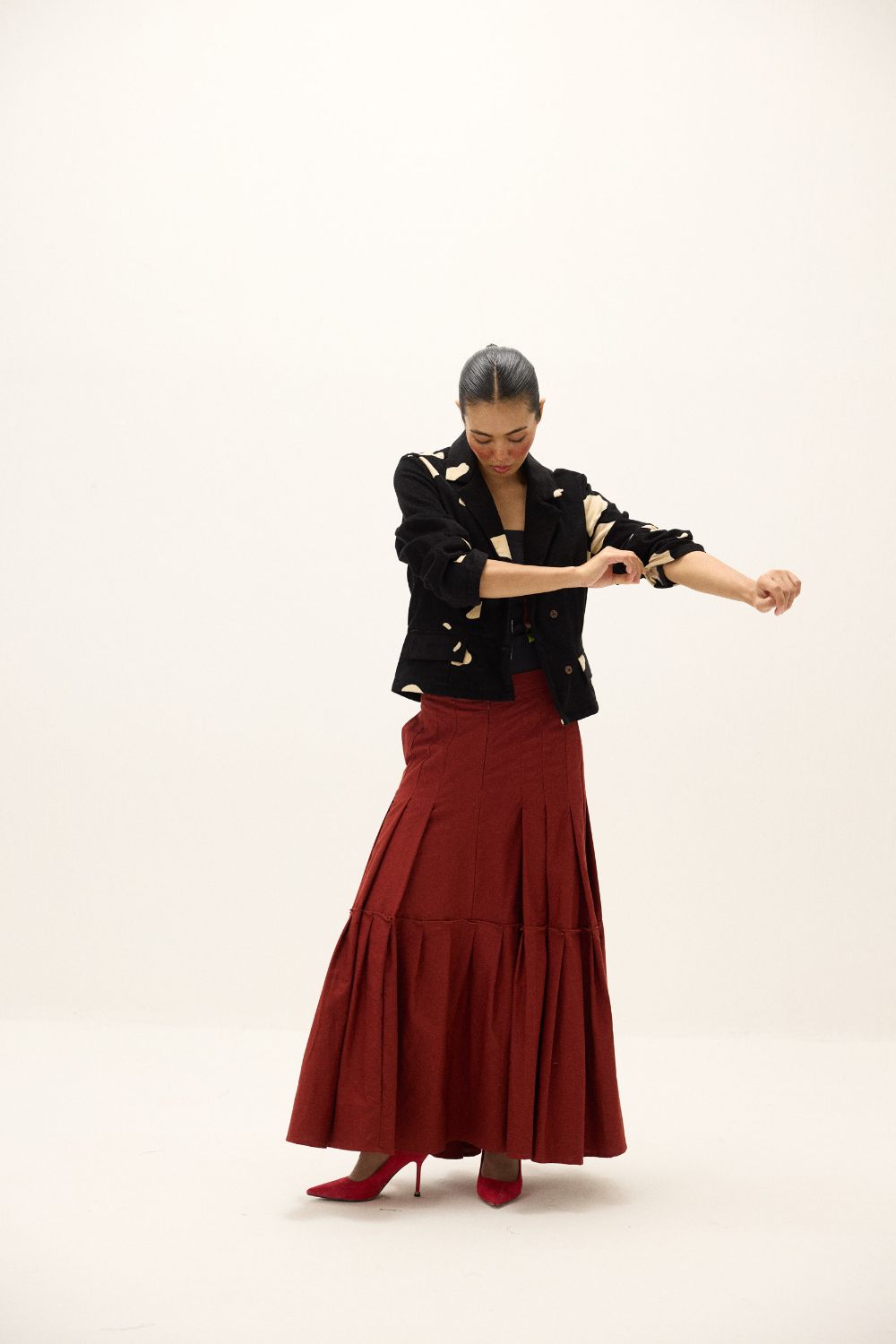 Rooted in handloom cotton and natural dyes, Khara Kapas works with the simplest geometry — circles, squares, triangles — and turns them into silhouettes that feel effortless, global, and emotionally familiar. There is a stillness to their clothes, a sense of returning to slower rhythms and honest materials, without ever losing relevance.