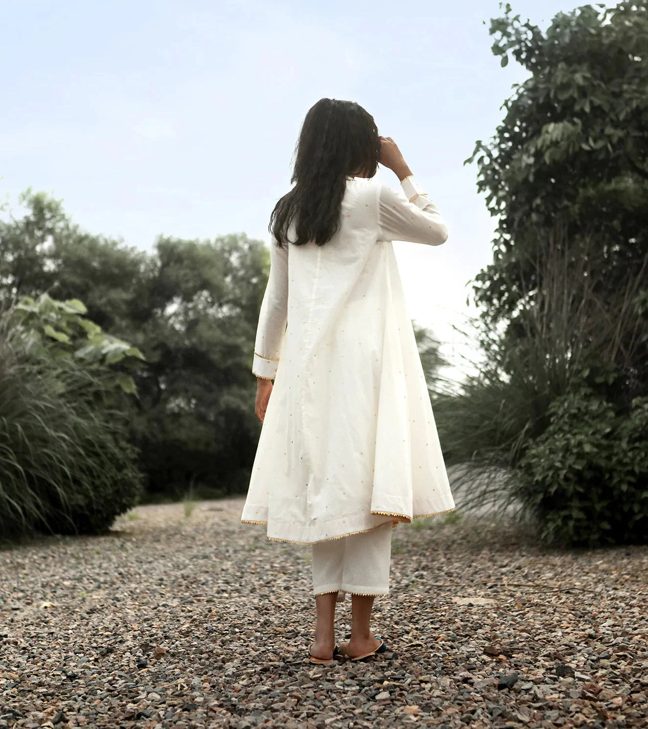 Each piece is grounded in India’s textile heritage yet designed for a woman who moves easily between cultures and climates. The brand’s commitment to homegrown cotton, artisanal processes, and clean, breathable shapes has made these garments not just beautiful, but deeply wearable.
