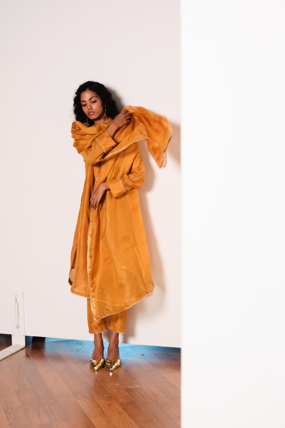 A mustard vibrant kurta set with full sleeves and a