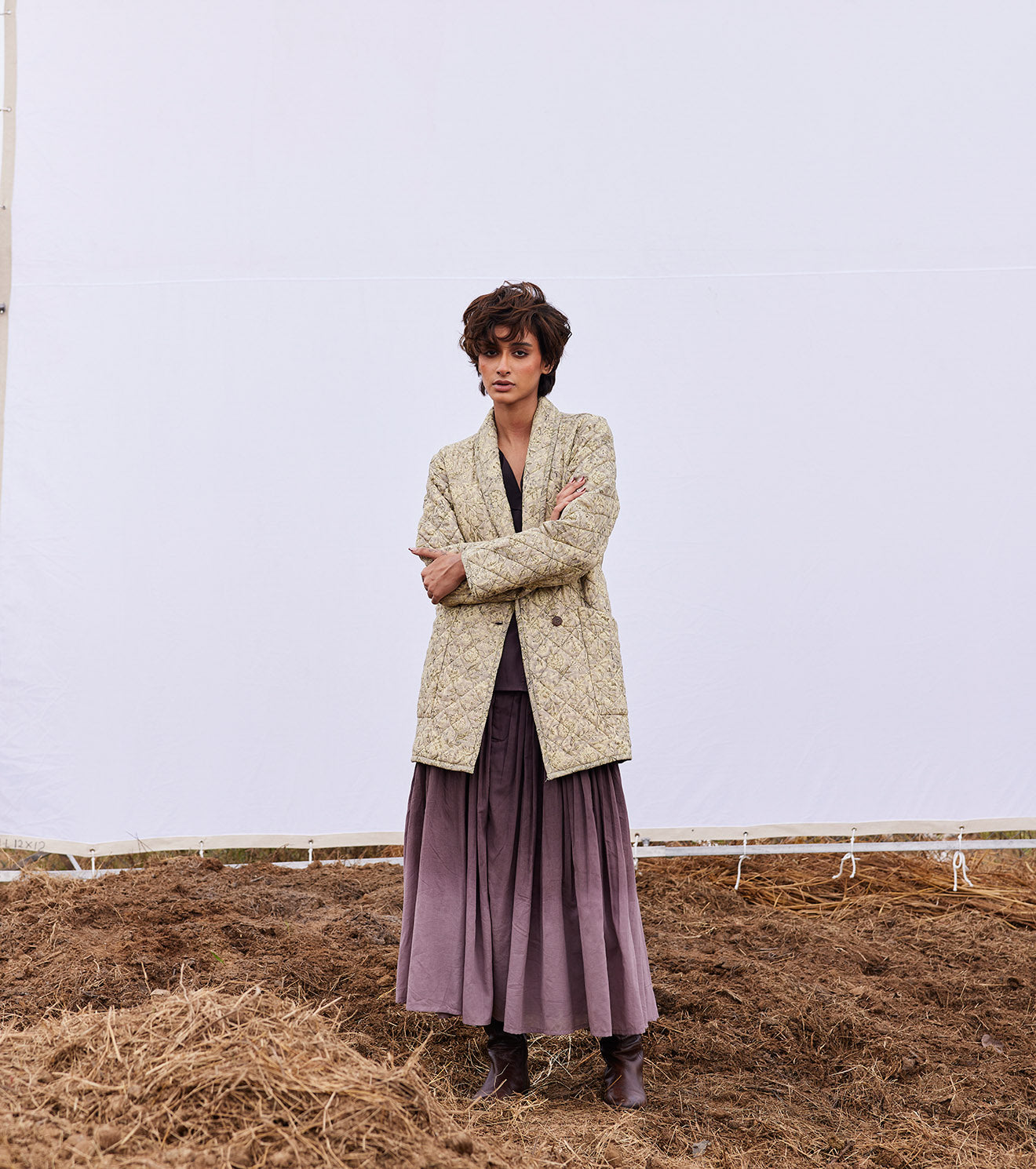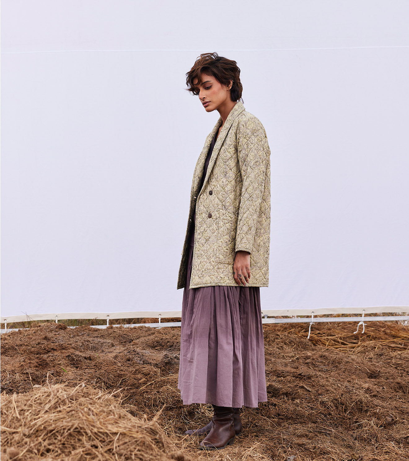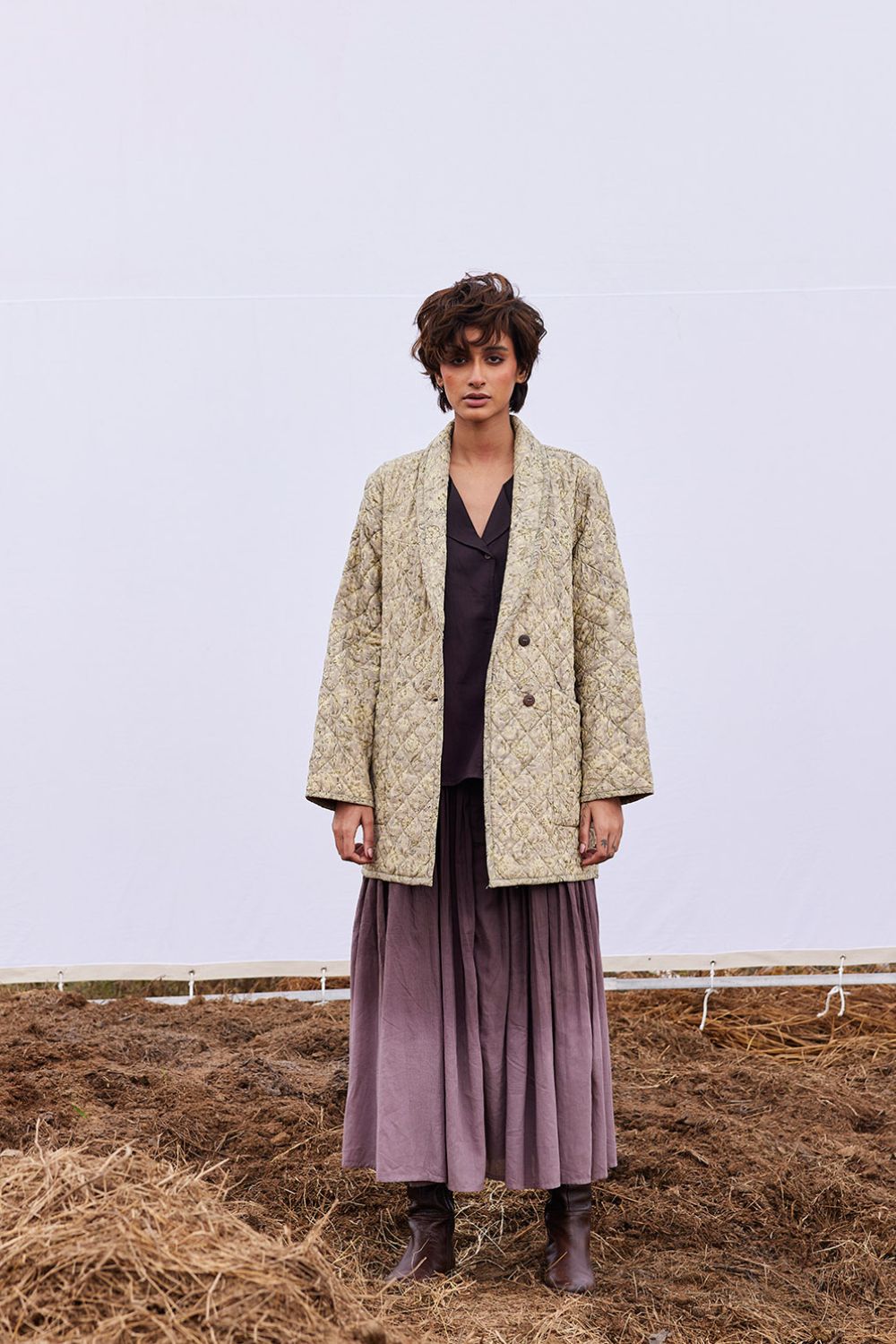 Rooted in handloom cotton and natural dyes, Khara Kapas works with the simplest geometry — circles, squares, triangles — and turns them into silhouettes that feel effortless, global, and emotionally familiar. There is a stillness to their clothes, a sense of returning to slower rhythms and honest materials, without ever losing relevance.