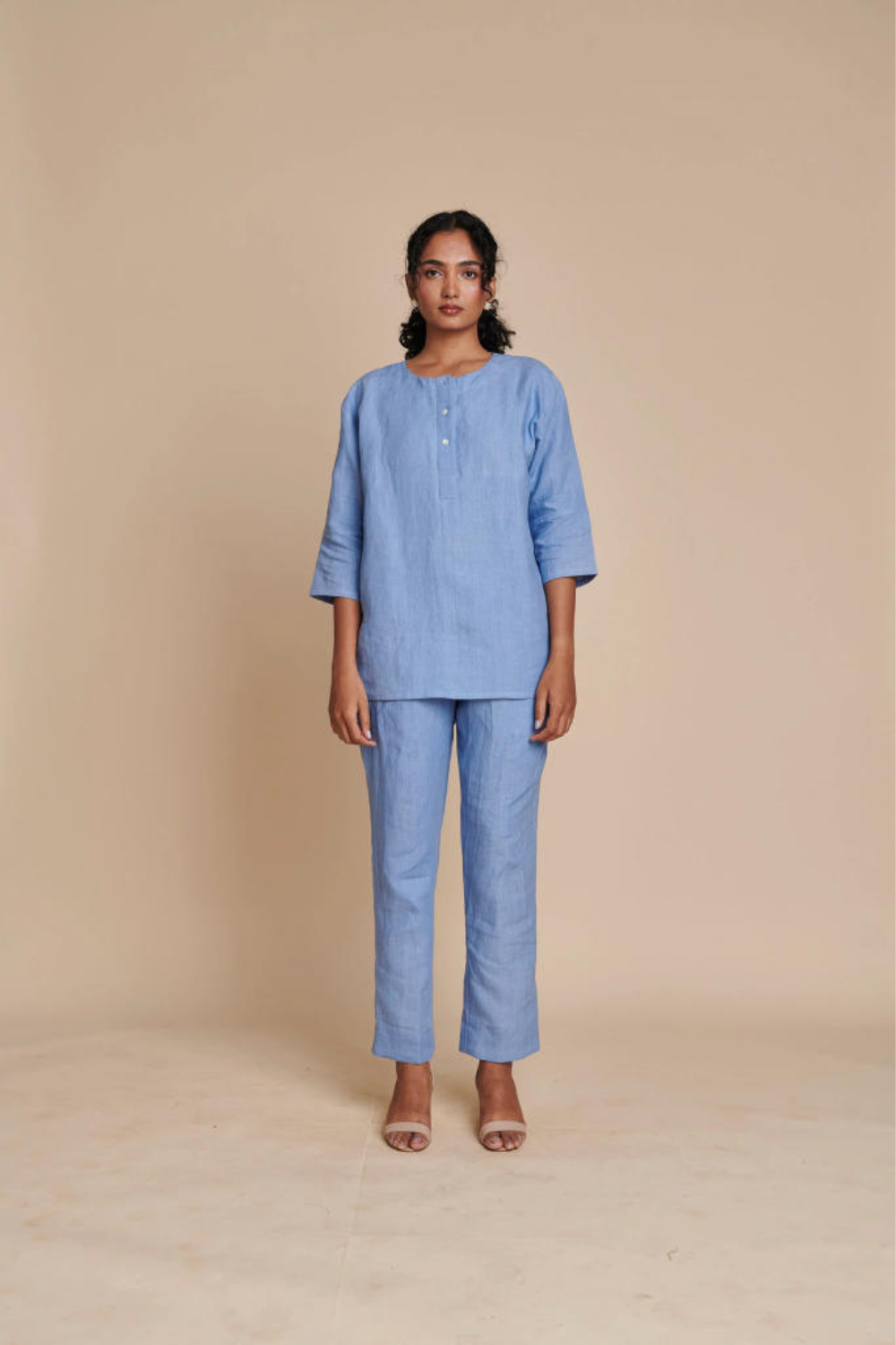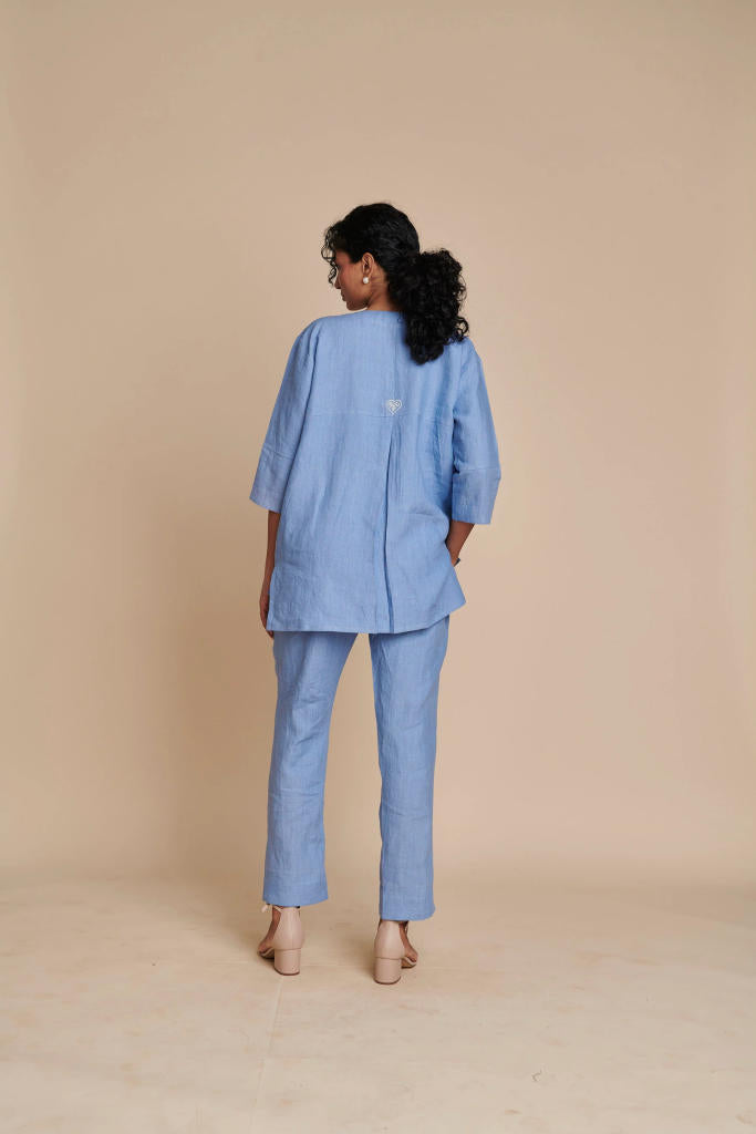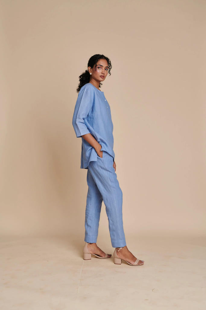 An absolute all-weather essential, this set is the ideal choice for that pitch meeting across town. Pair it with strappy sandals or stilettos to channel your inner boss-lady. Crafted in breathable linen and refreshing summer hues.