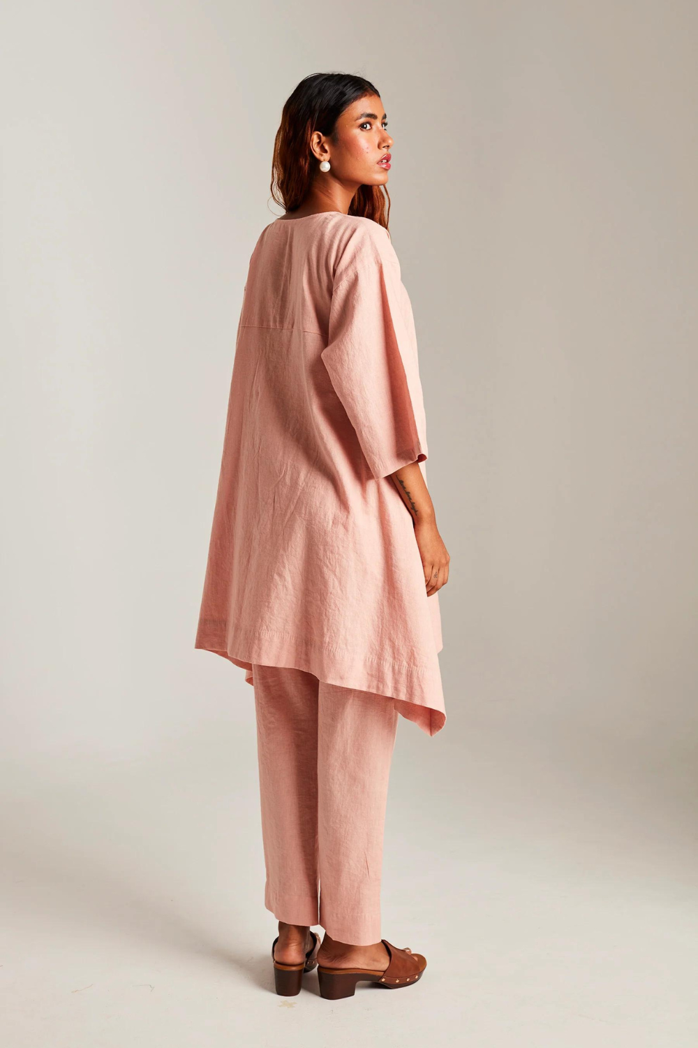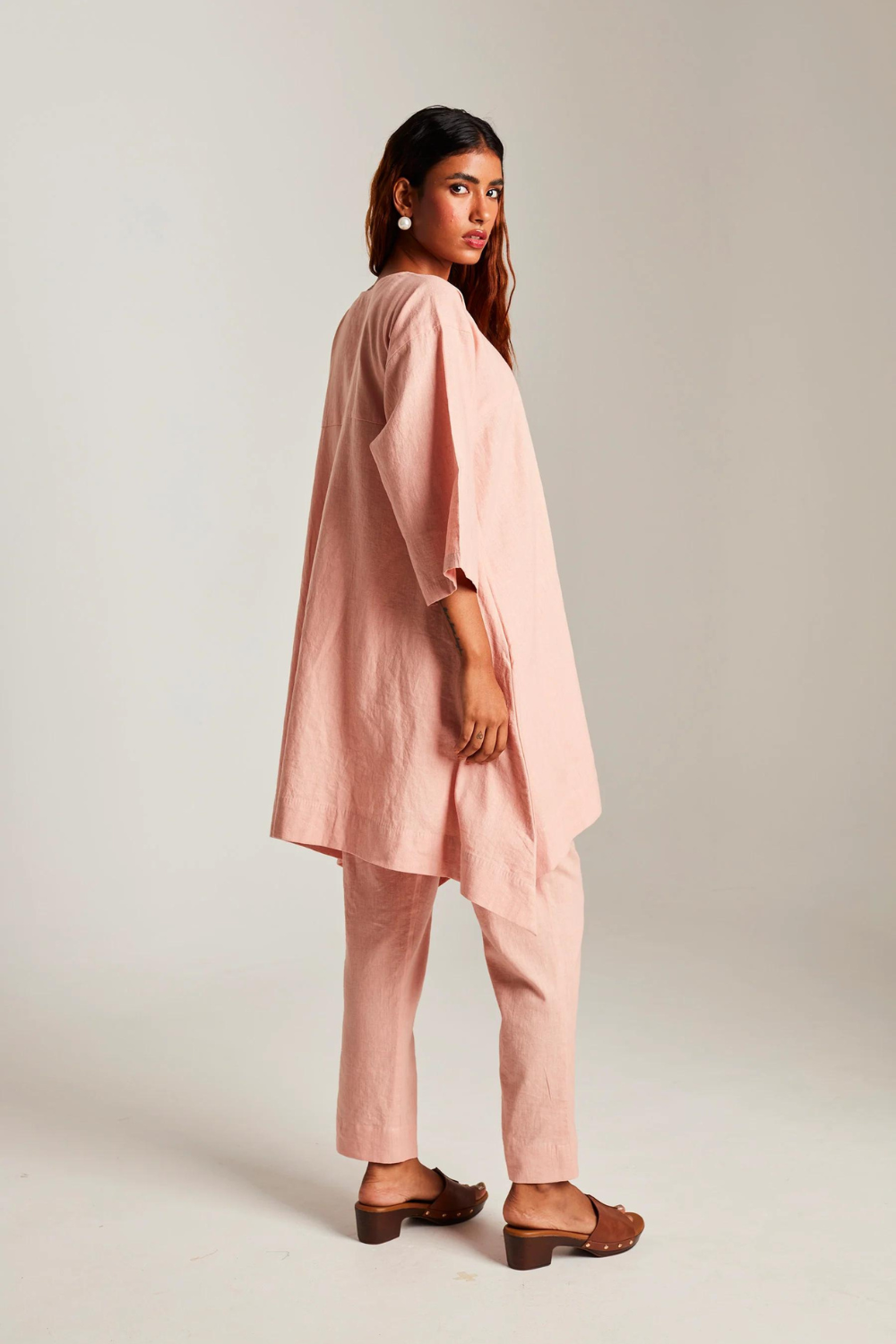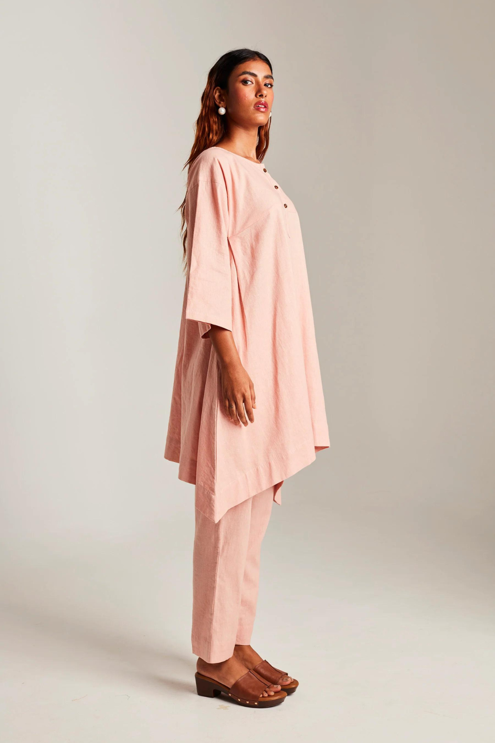 Their pieces are crafted exclusively from high-quality, ethically sourced Euroflax-certified linen, chosen for its purity, longevity, and low environmental impact. The brand’s design language mirrors the nature of the textile itself: clean-lined, airy, minimal, and beautifully unfussy. These are garments that live with you — softening, easing, and developing their own patina over time.