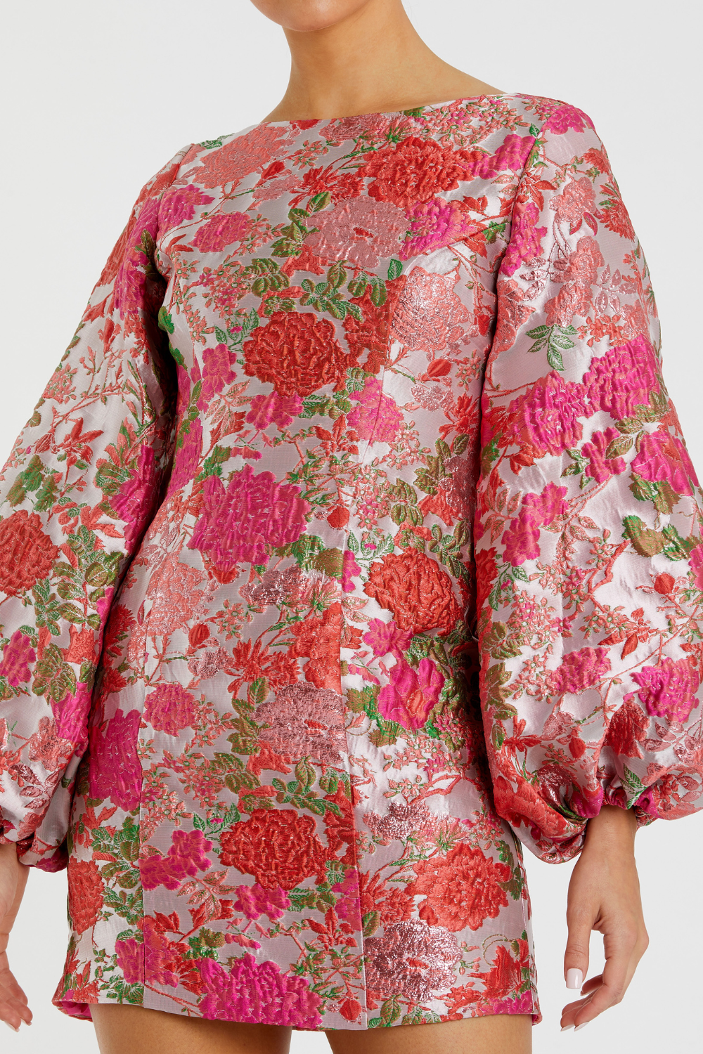 56106-Balloon Sleeve Mini Dress-Pink Multi