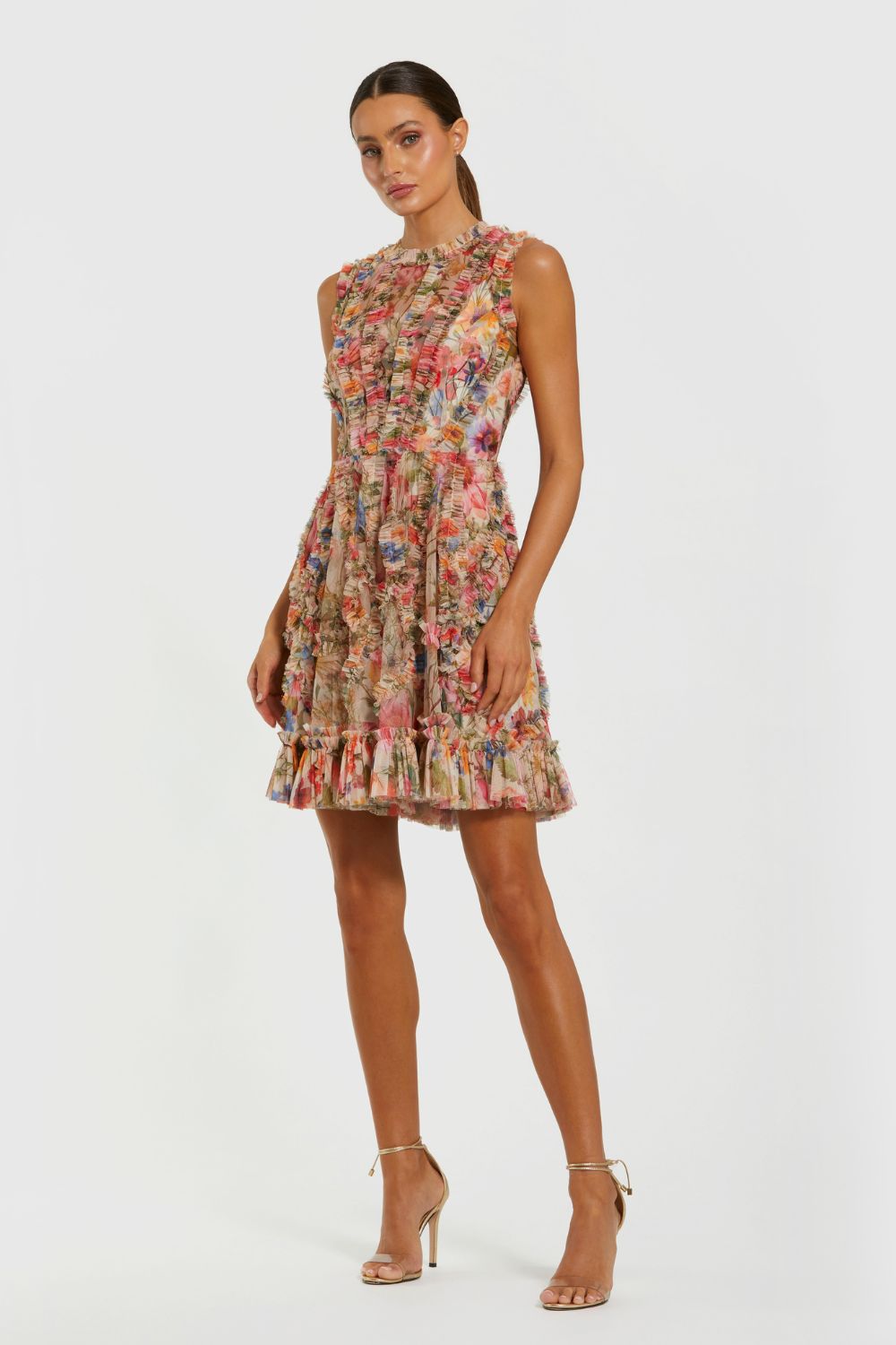 Product Type: Dress Mesh Micro Ruffle High Neck Mini Dress