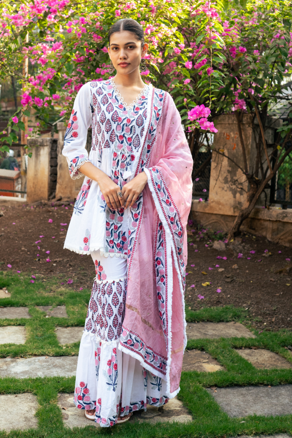 Inspired by the richness of the mogra is our collection of florals handcrafted on an ivory base of handspun cotton Mul, Kota Doria and Chanderi. Finished with delicate laces invoking summer in its true essence.