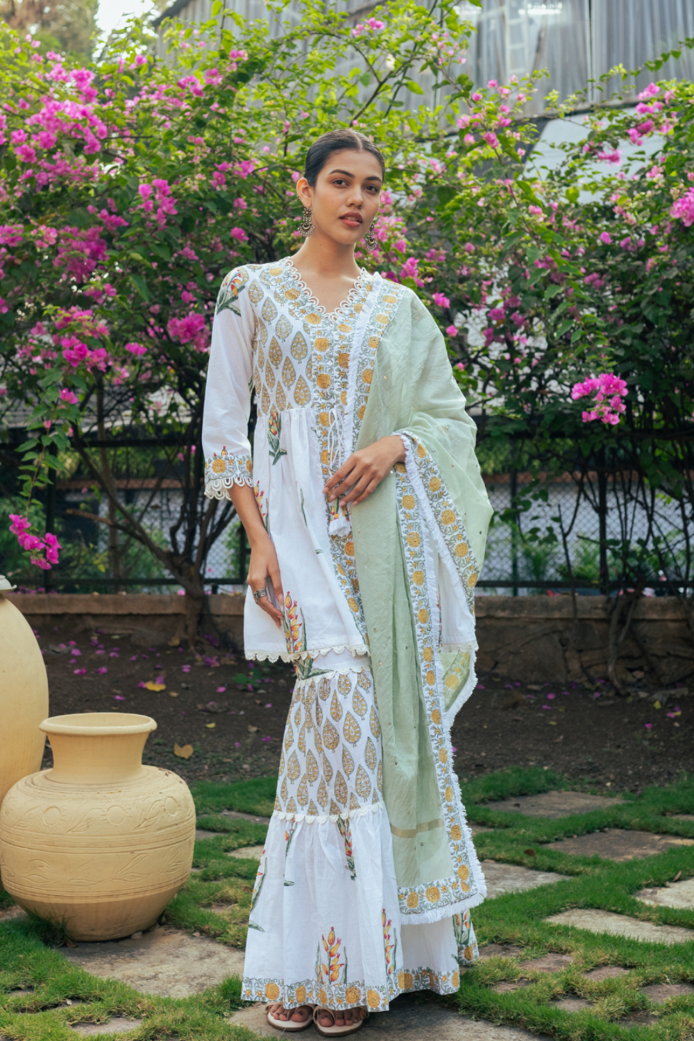 Ivory and Yellow Block Printed Sharara Set