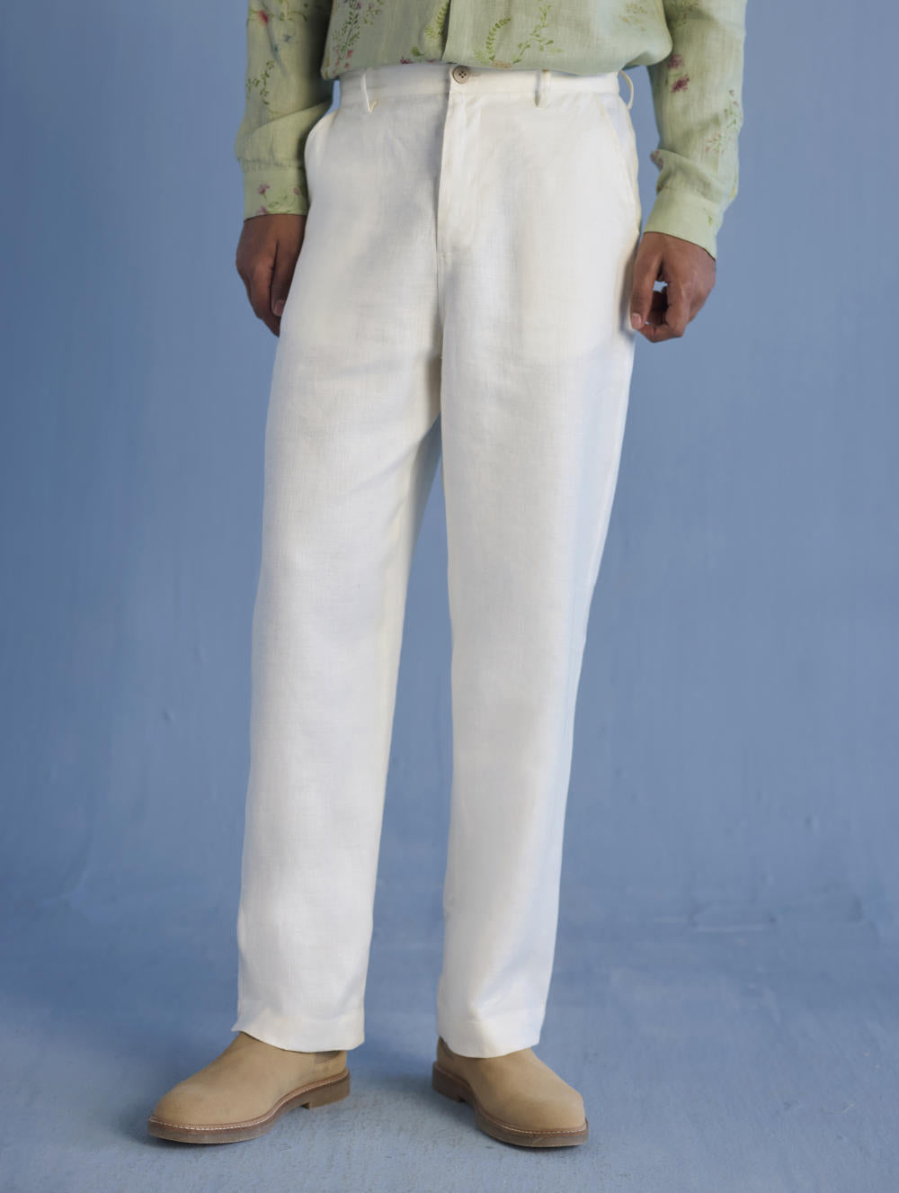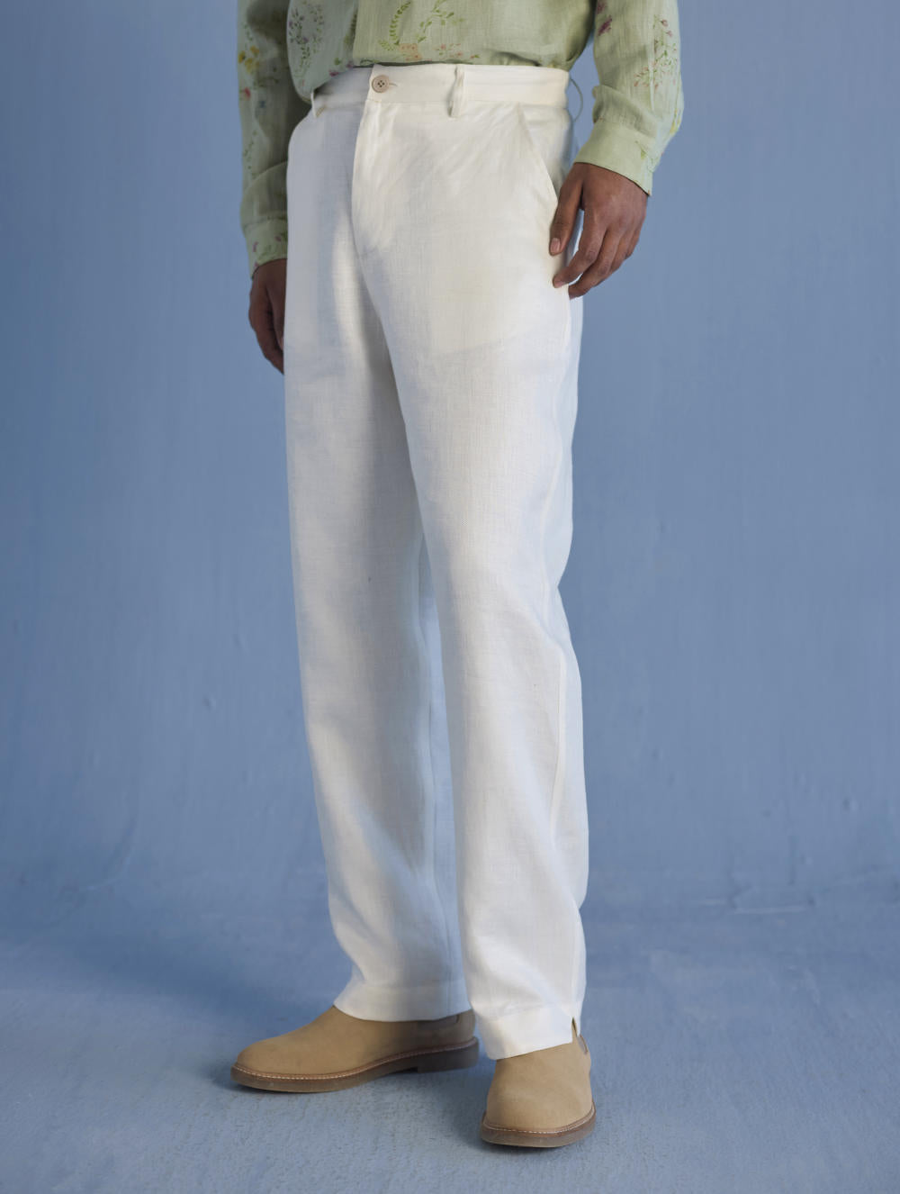 Classic linen pants in a beautiful pure linen in a twill weave with a zipper, hook opening and elasticated back waistband and pockets in our classic yarn-dyed linen with a v-cut detail at the hem.