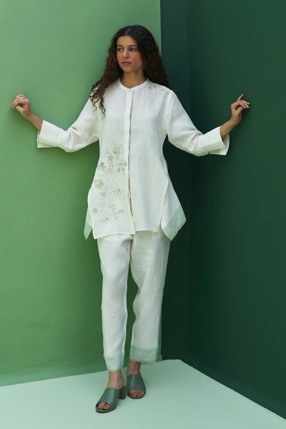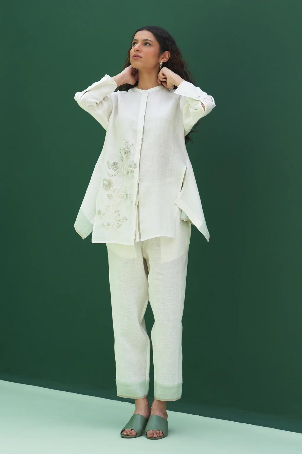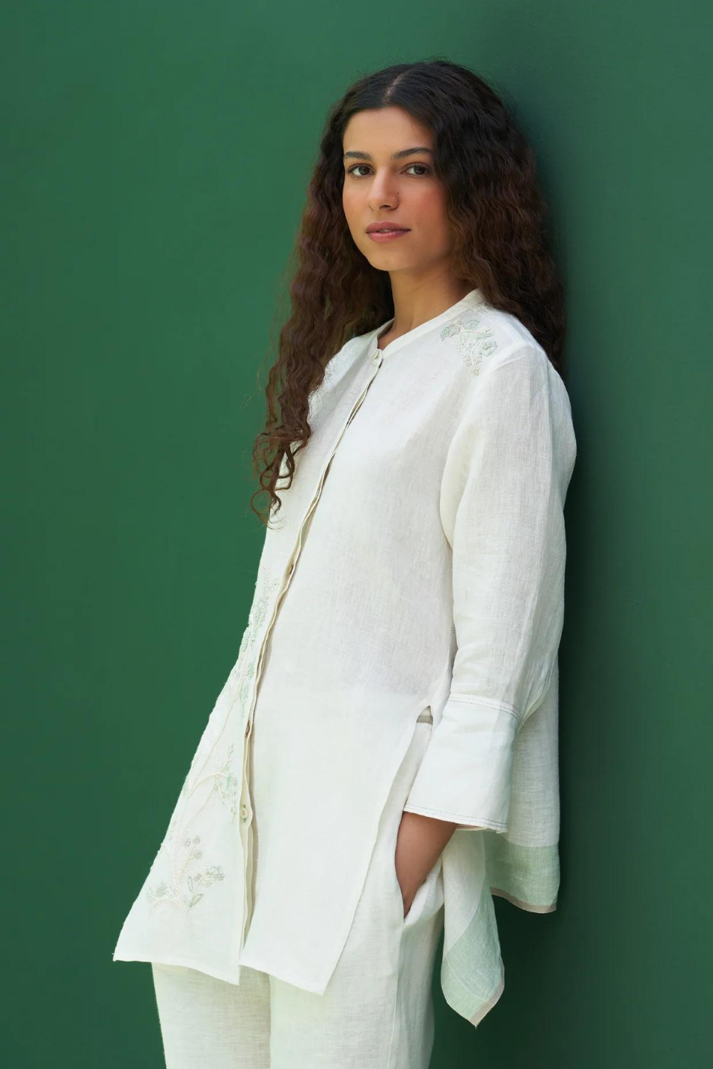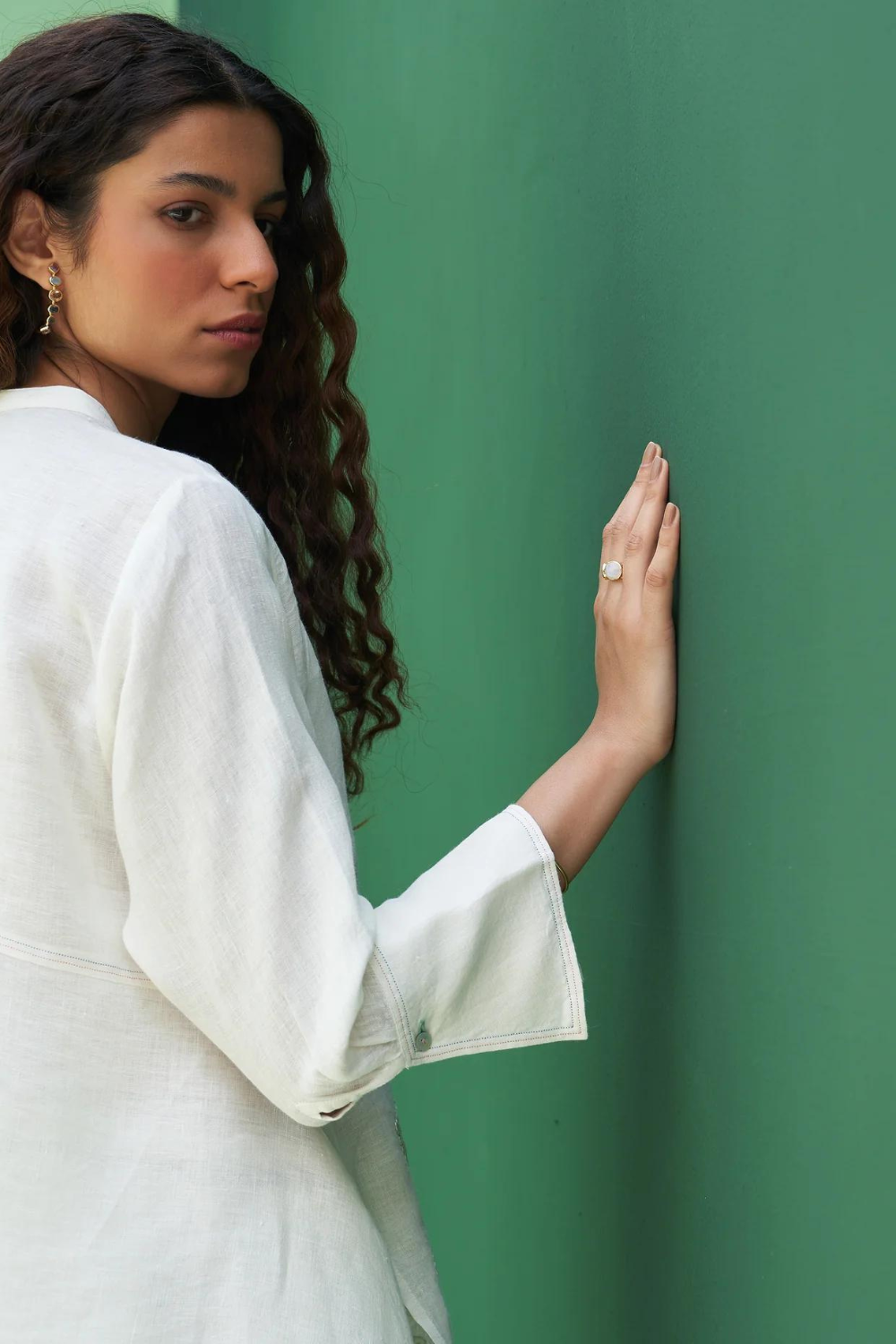 Our favourite oversized shirt with a relaxed collar, the Kiku has drop shoulders and 3/4th sleeves with intricate top-stitch detailing.