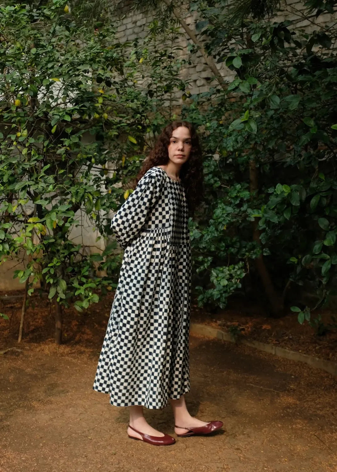 Our classic silhouette is back again with a subtle twist, of knife pleats instead of the usual gathers cut from the softest medium-weight handwoven double Ikat dyed using organic Indigo dye. It is adorned with chic floral embroidery done by hand at the yoke and a small portion of the back.