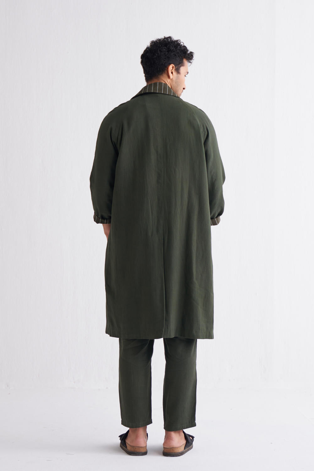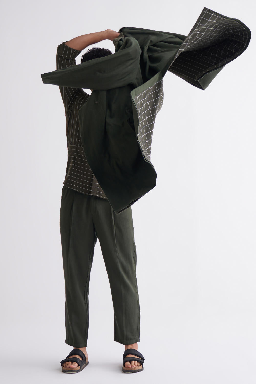 - Lined with olive stripe and check fabric