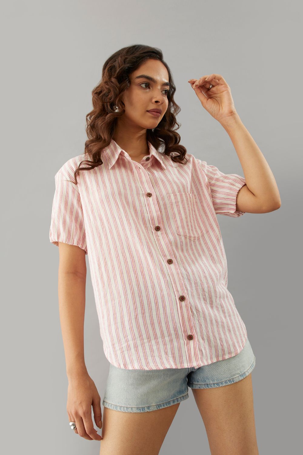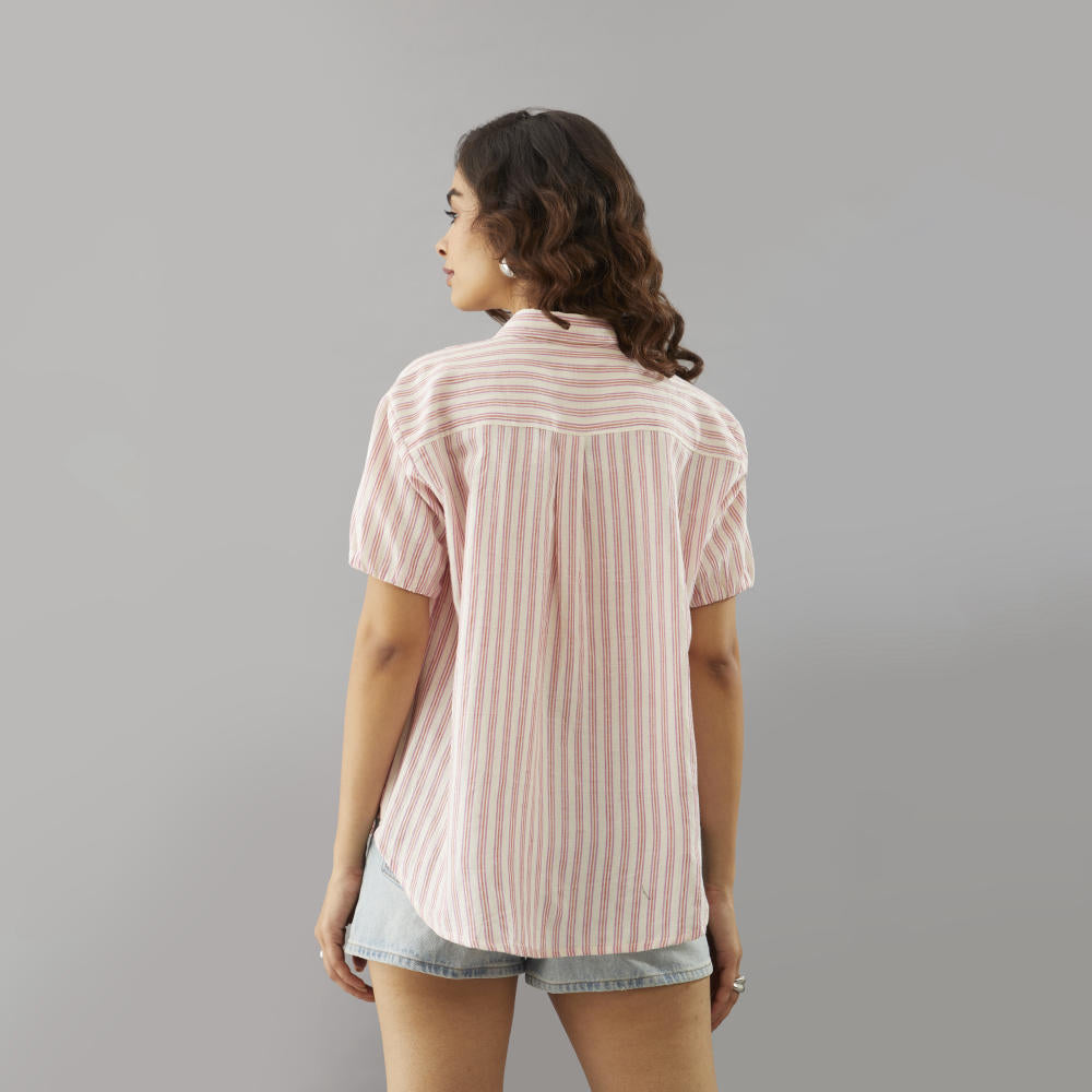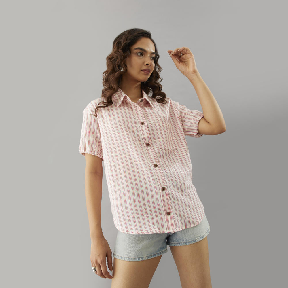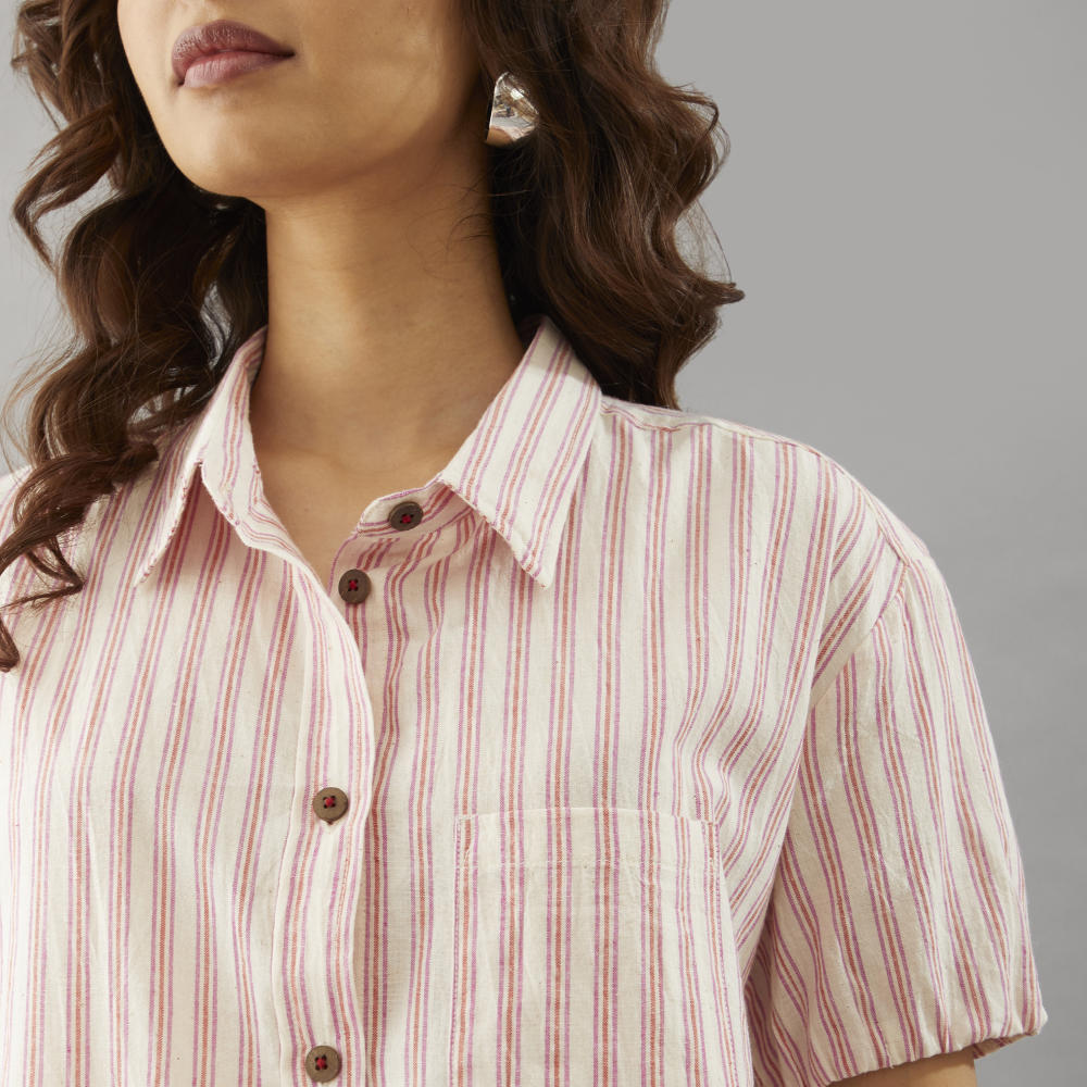 Hues/weaves: Peach Pink Thin stripes