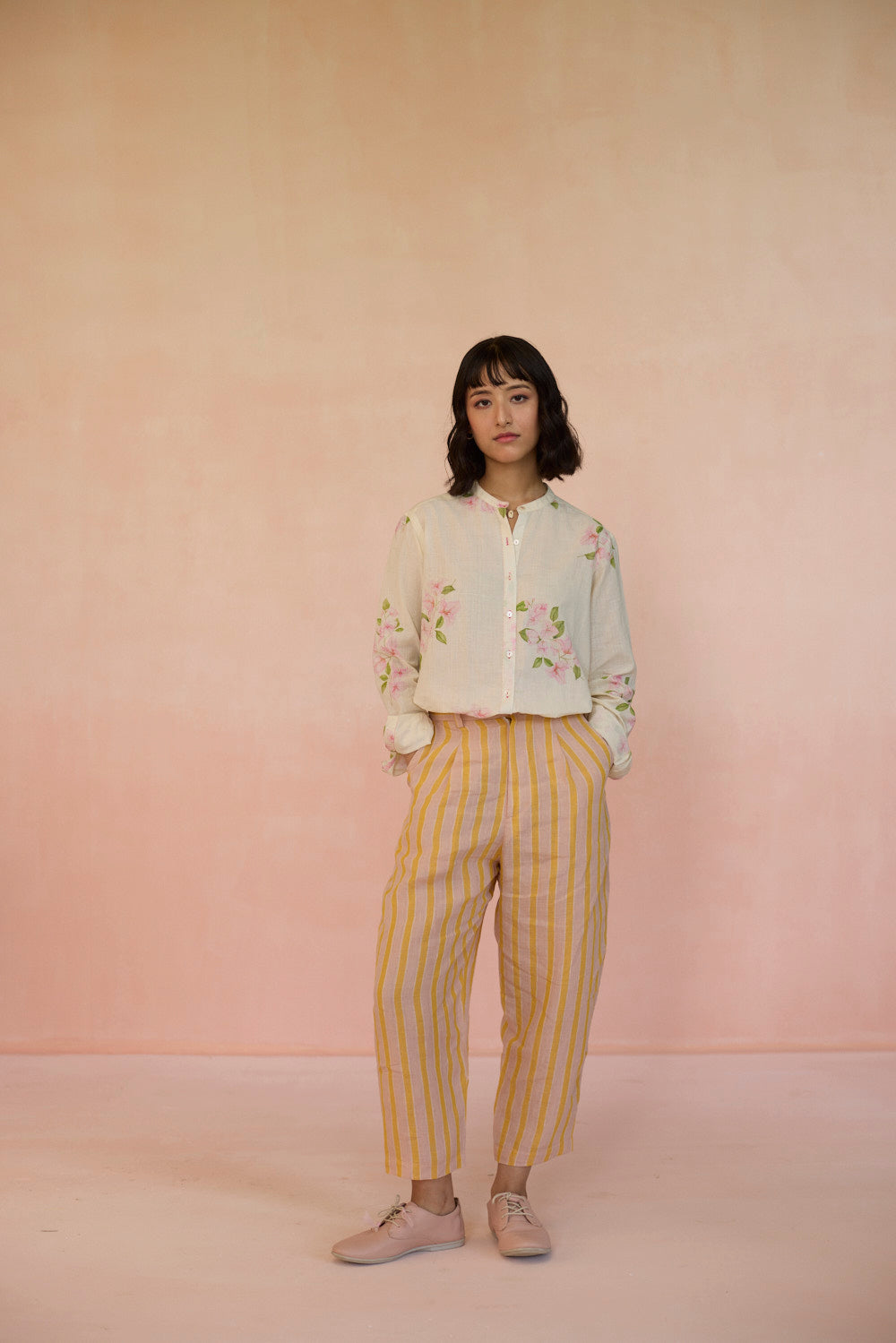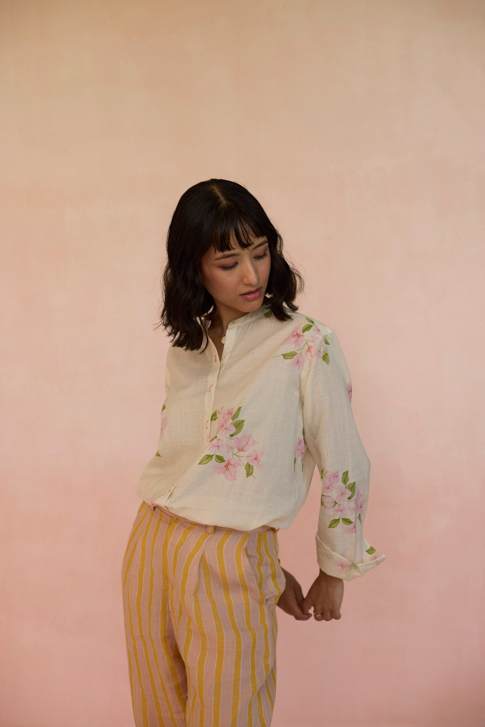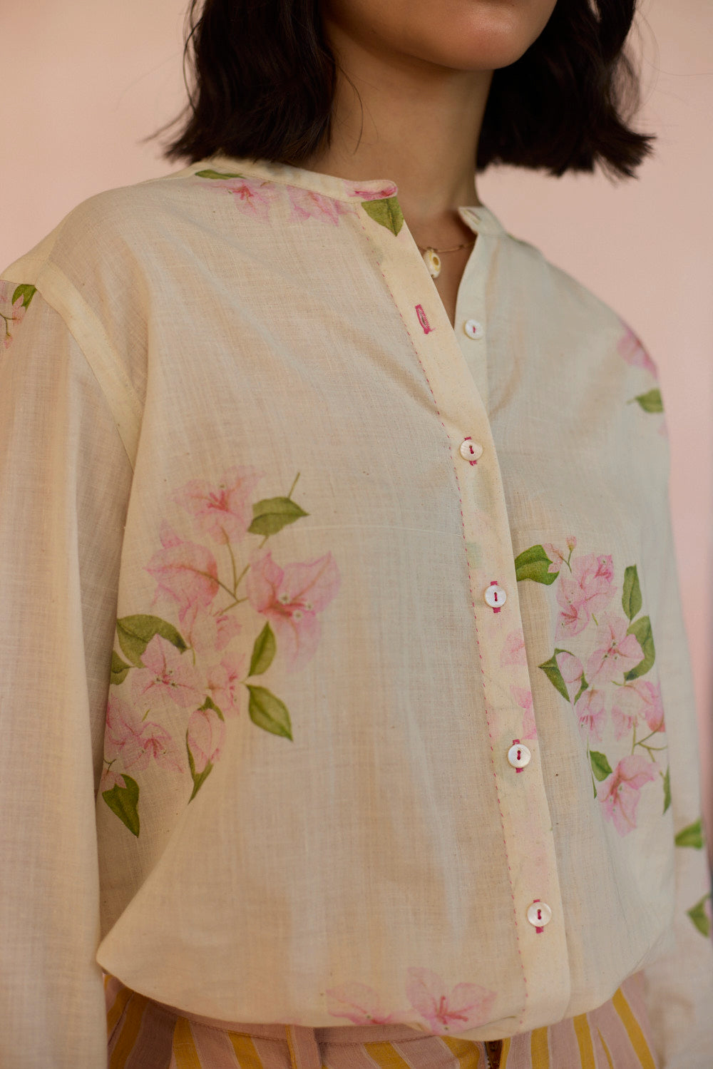 Our Bougainvillea shirts reminds us of those vibrant, sunny days evoking nostalgia. Vivid hues inject a sense of playfulness and the flowers' paper-like petals and twisting vines celebrates life’s moments. The shirt is made with 100% handspun, handwoven cotton that lends grace and form to the fabric. Hand-sewn shell buttons and hand-swen seams adds a touch of individuality. The soft, yet durable cotton drapes effortlessly, offering comfort without compromising on style. The perfect shirt for a day out.