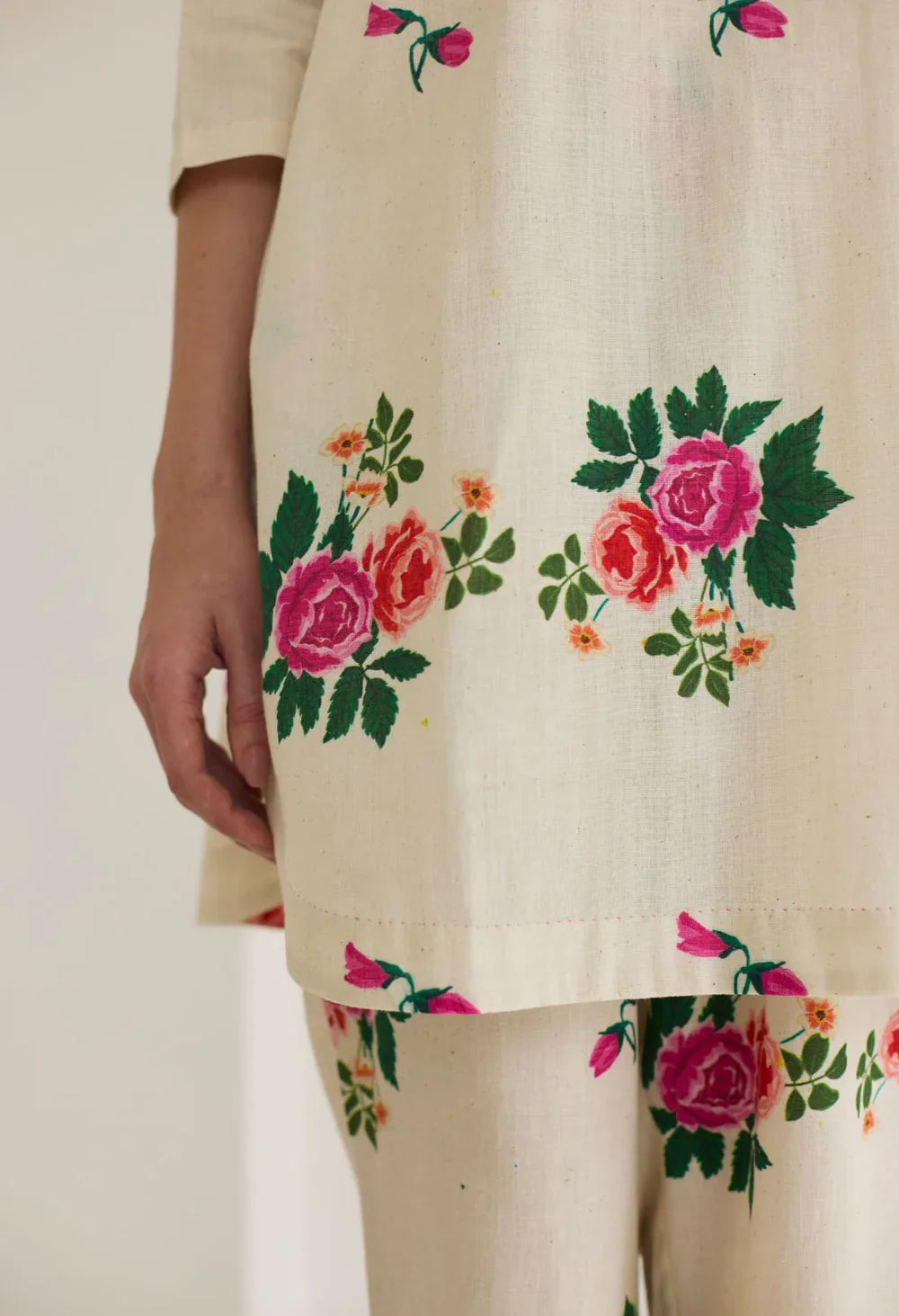 Our Rose Chintz print with its vibrant bloom, weaves together elegance and nostalgia. The roses symbolise romance, grace, and beauty in full bloom. This floral motif captures the essence of heritage, offering a refined yet sophisticated feel.