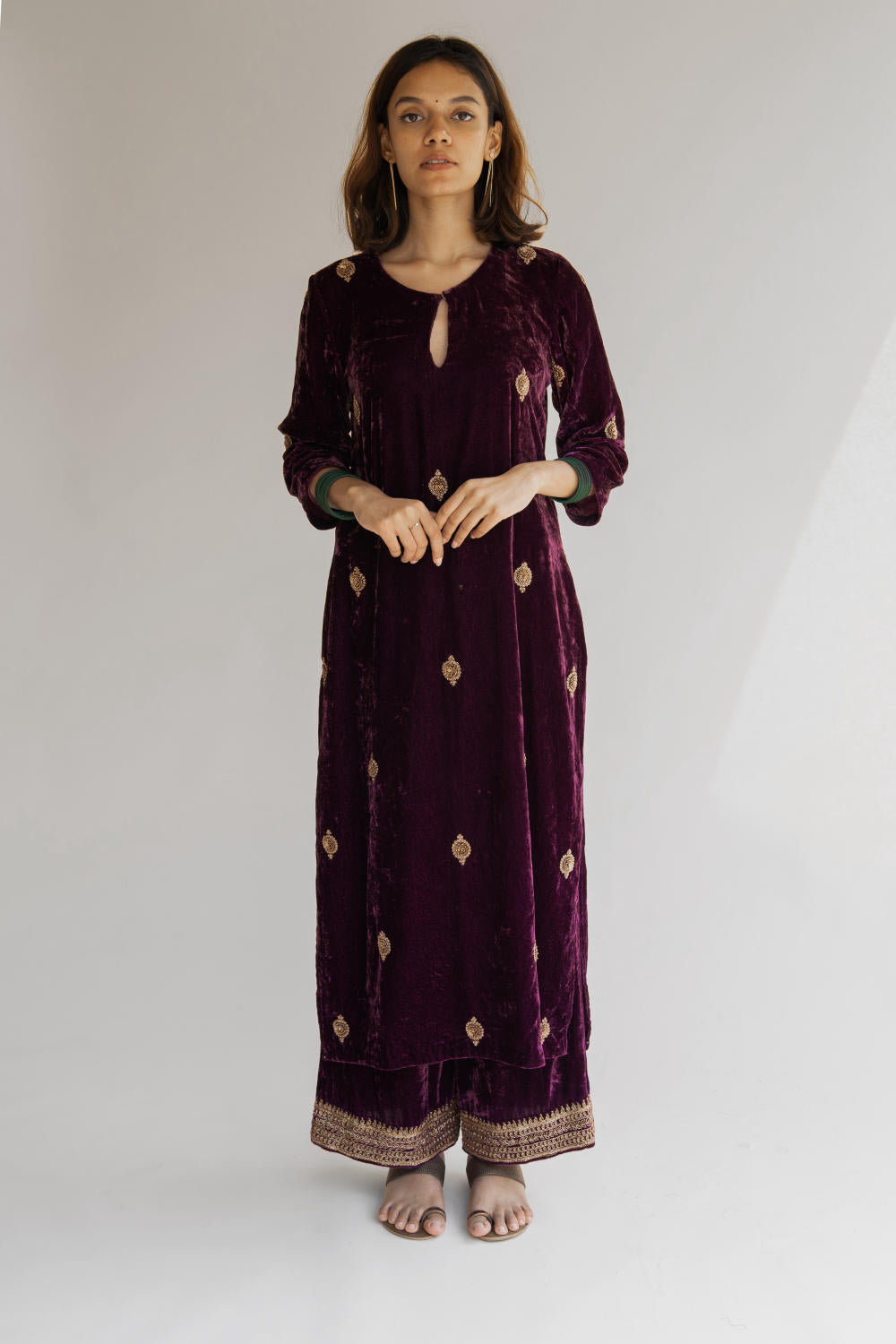 With velvet being the reason behind this ensemble's rich fall, it retains its soul and holds you close to your grounds.
