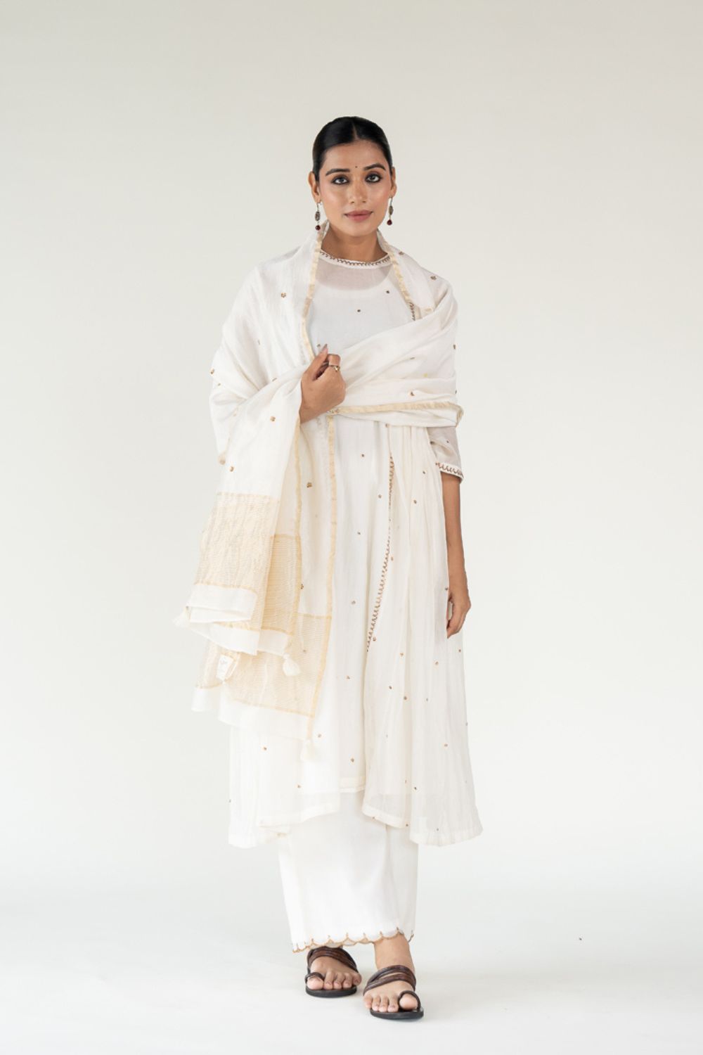 Paired with a chanderi odhani highlighted by