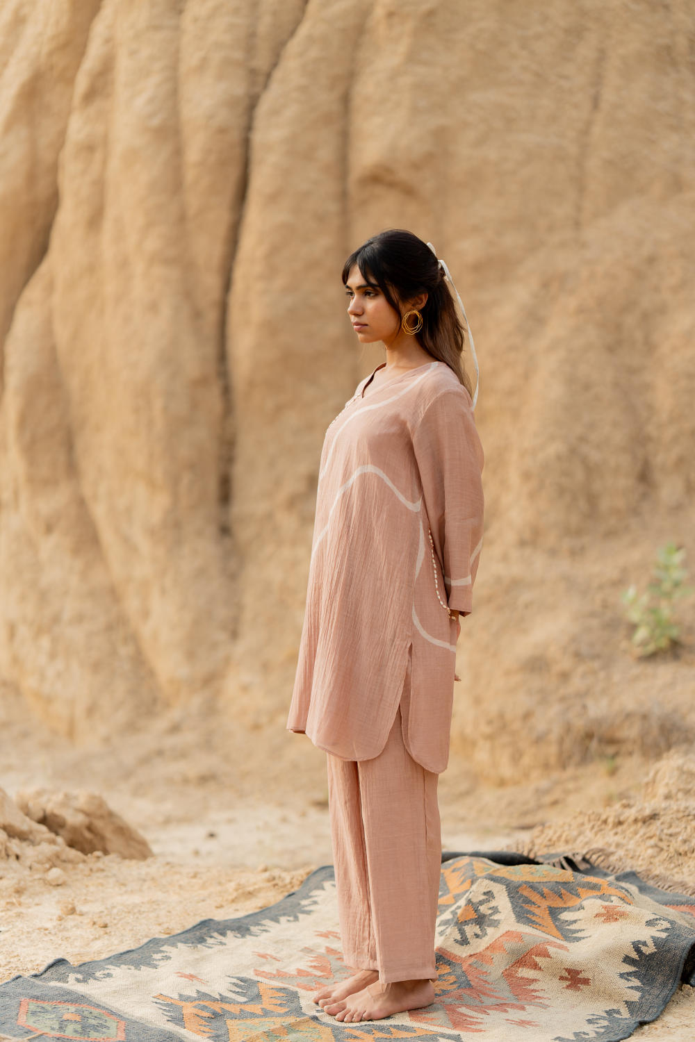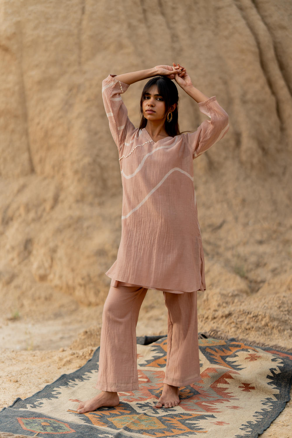 Straight fit kurta set featuring hand painted strokes, paired with comfortable ankle length pants