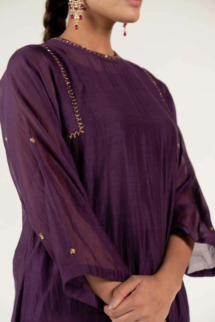 Straight kurta featuring peeta scallops and dots detailing,