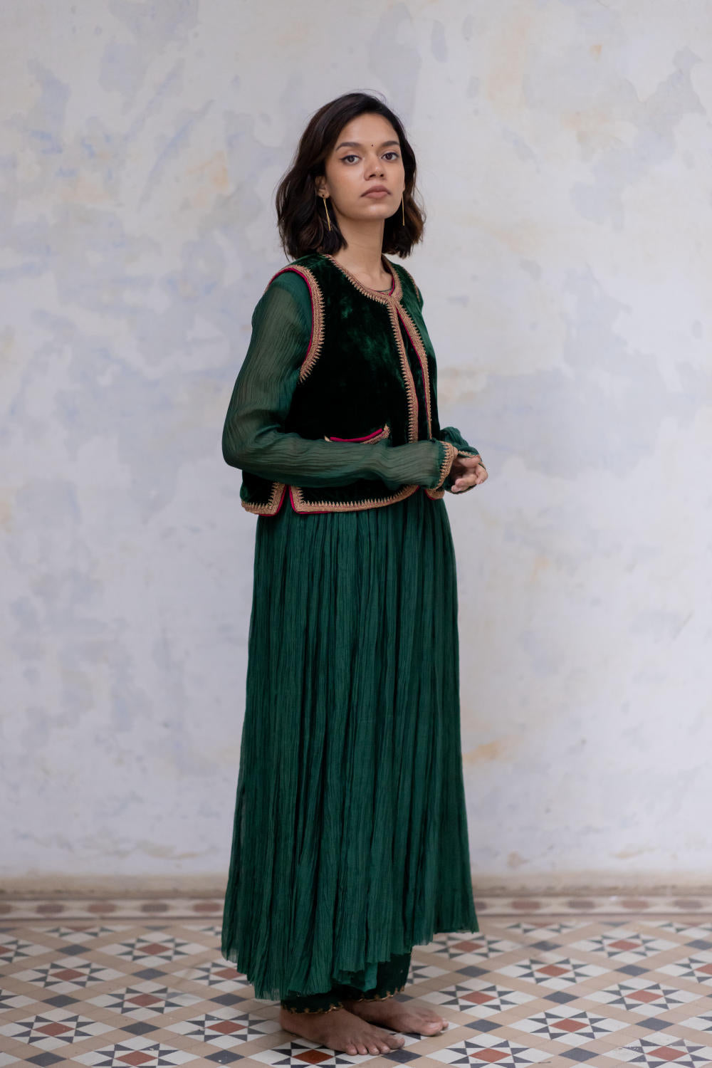 The label embraces the rich artisanal heritage of Mughal India through its offerings. The nizams and the Persians enamored the world with their own unparalleled craftsmanship. The intention is to mould that into timeless design through modern techniques and fluid silhouettes.