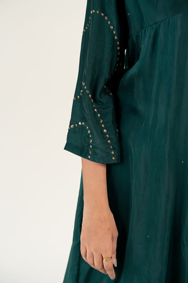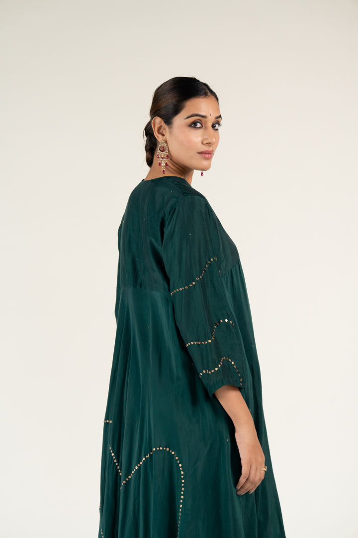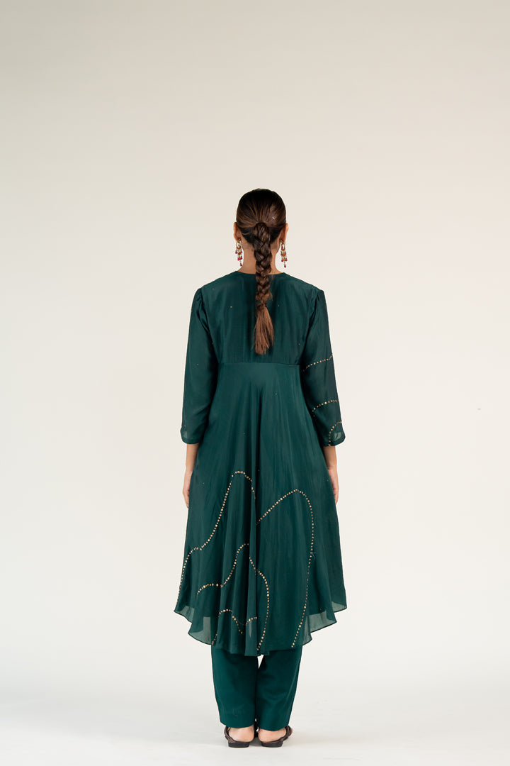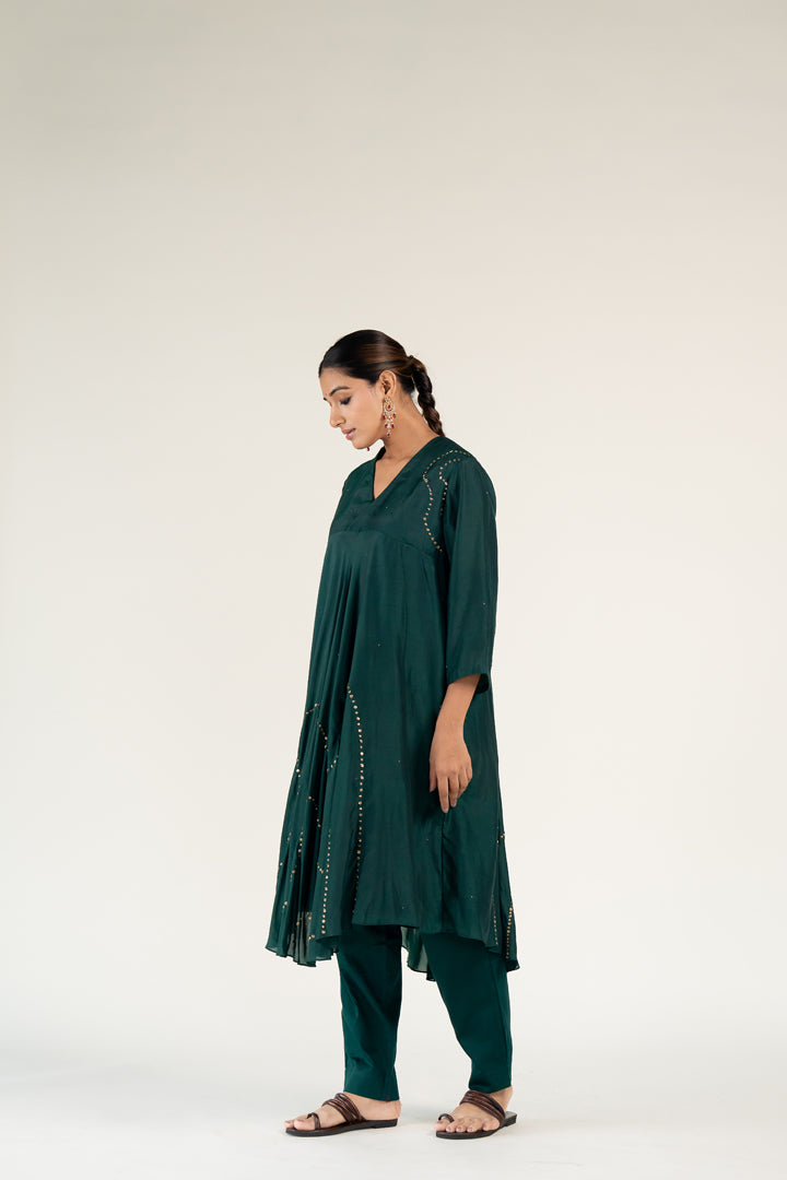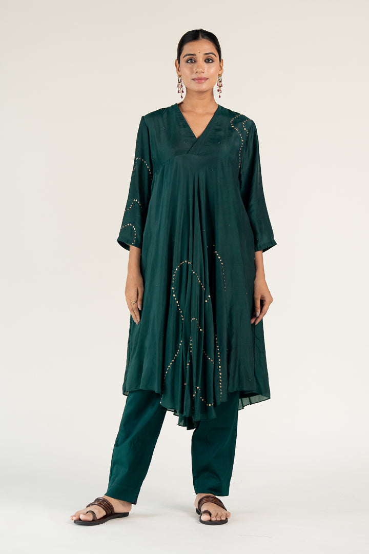 V-neck kurta featuring a bias flare silhouette,